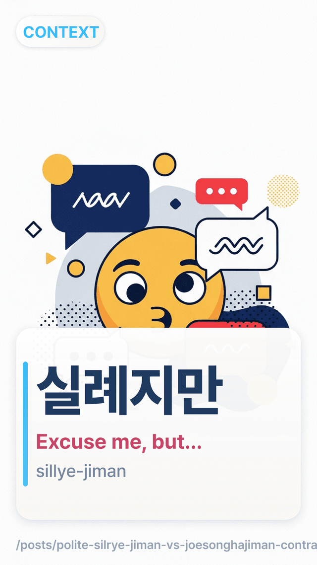 Learn when 실례지만 vs 죄송하지만 fits—permission vs apology—with a face-threat meter, table, and rewrites to sound polite. Master