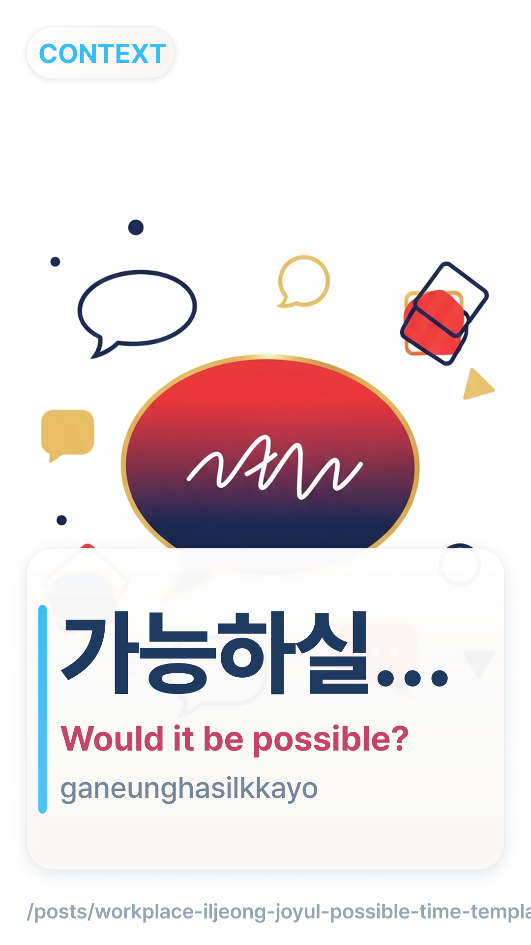Use 가능하실까요ganeunghasilkkayo when you want to propose a time without sounding like you’re assigning it. It’s especially safe for seniors and external contacts.