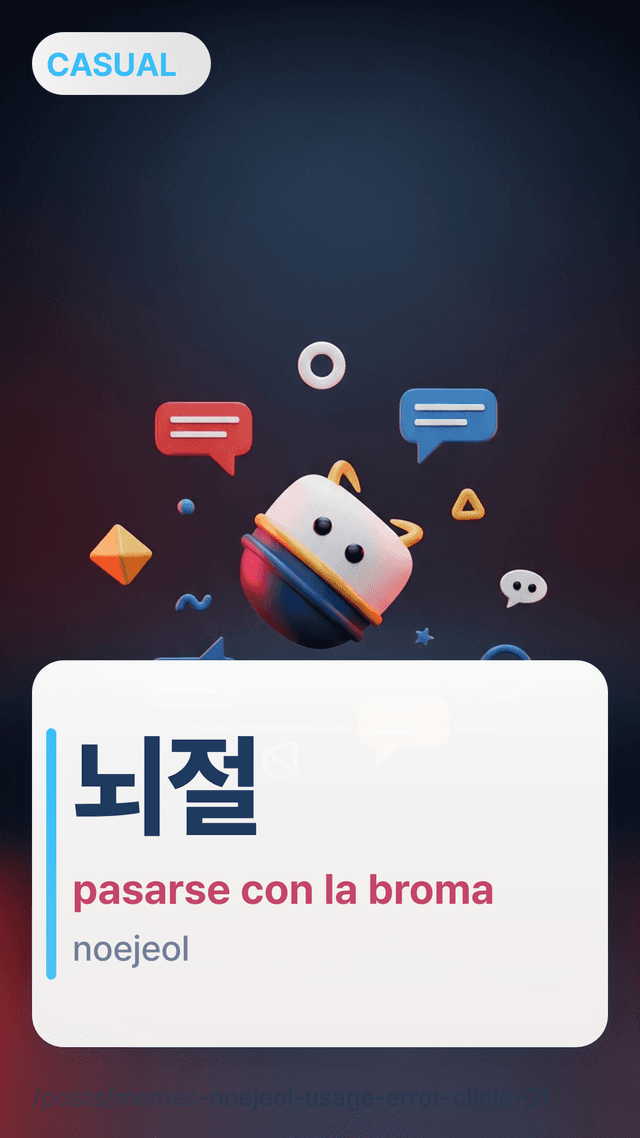 뇌절noejeol a menudo trae una energía de “te estoy comprobando el rollo”. Con amigos cercanos puede ser un freno suave. Con desconocidos puede sonar como: “te estás humillando—para ya”.
