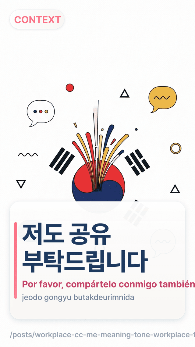 Este es mi punto de referencia personal: en mi primera semana en una oficina coreana, copié un hábito directo del inglés (“Please CC me”) al coreano de forma demasiado literal y sonó rígido. Luego un compañero me enseñó el estándar más suave: pedir que te añadan “para referencia” y dar las gracias.