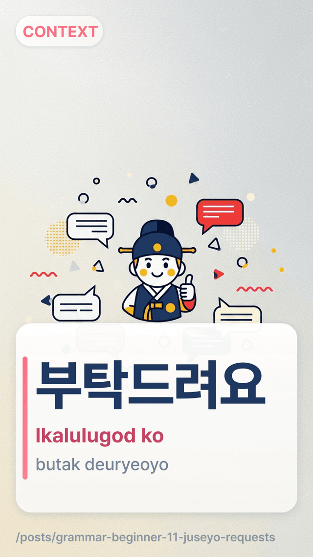 Maliit na cultural note: sa Korean offices, madalas nilalambot ang pakiusap kahit obvious na ang task—ang pagdagdag ng 좀jom at pagtatapos sa 주세요juseyo puwedeng magbago ng buong vibe.