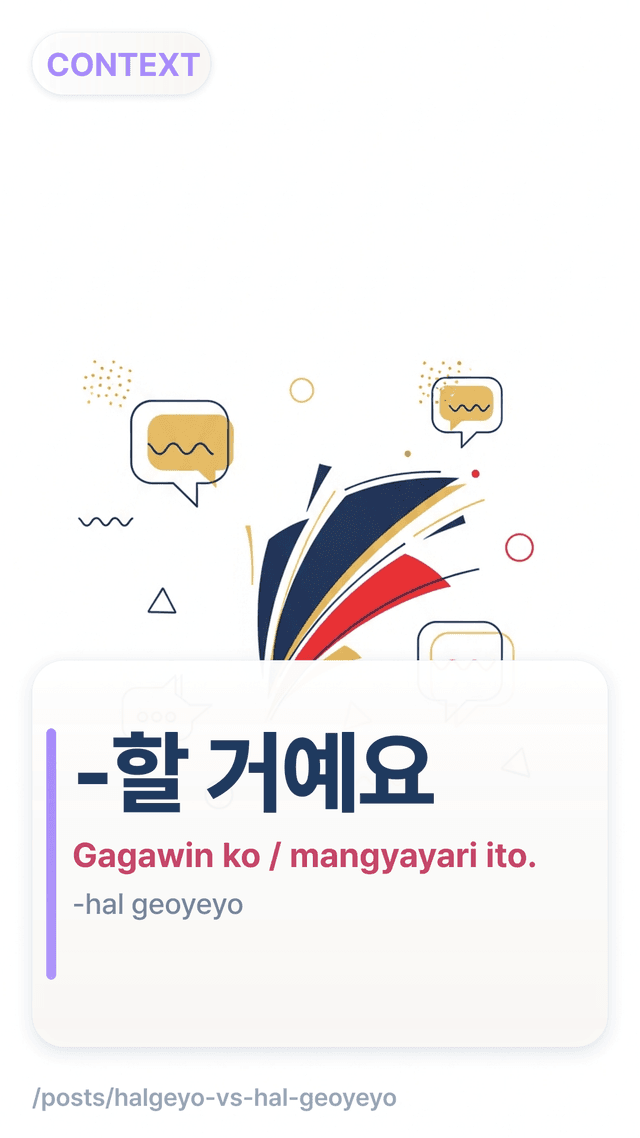 Matutunan ang -할게요 at -할 거예요 gamit ang totoong nuance sa araw-araw, minimal pairs, at decision tree para tumigil kang magmukhang alangan sa trabaho—master