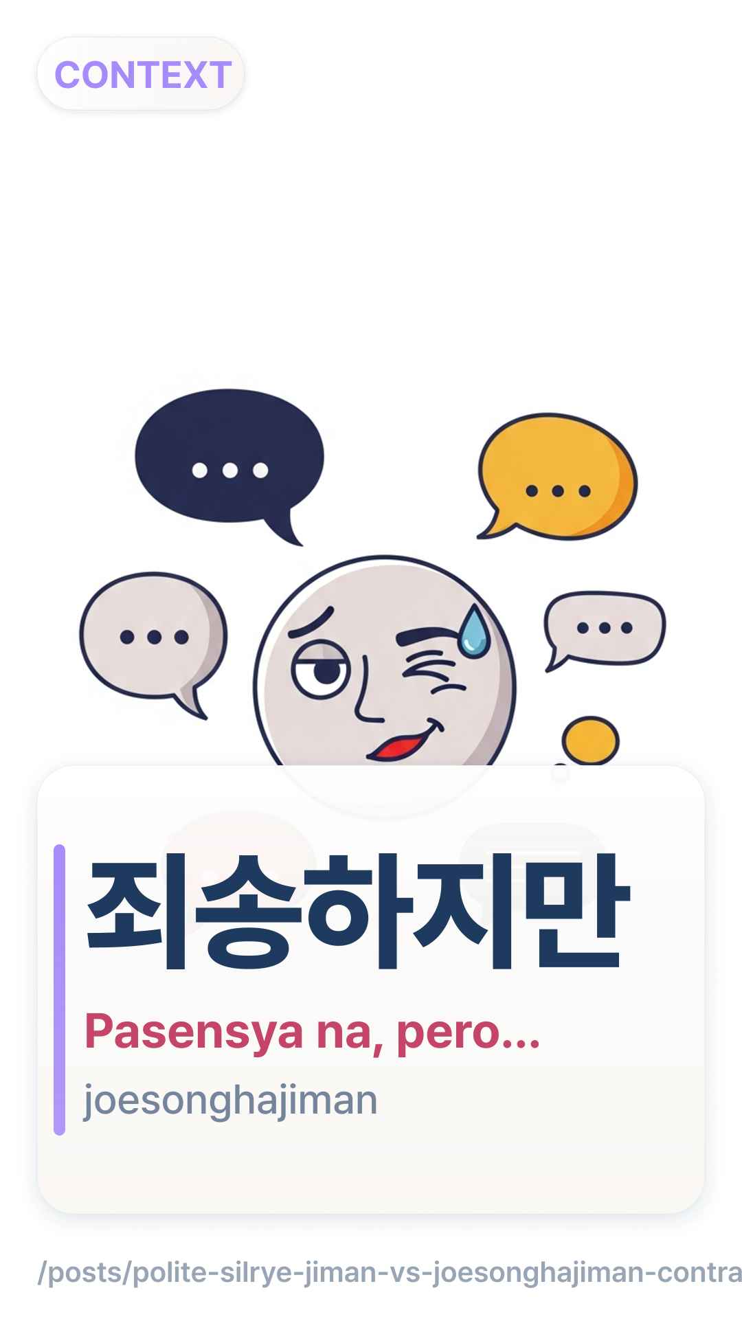 Noong unang linggo ko sa Seoul, palagi akong nagsisimula sa 죄송하지만joesonghajiman kahit simpleng tanong lang sa counter. Magalang siya, pero parang may nagawa na akong abala. Kapag naramdaman mo ang pagkakaibang 'yan, mas madali na ang dalawang pariralang ito.