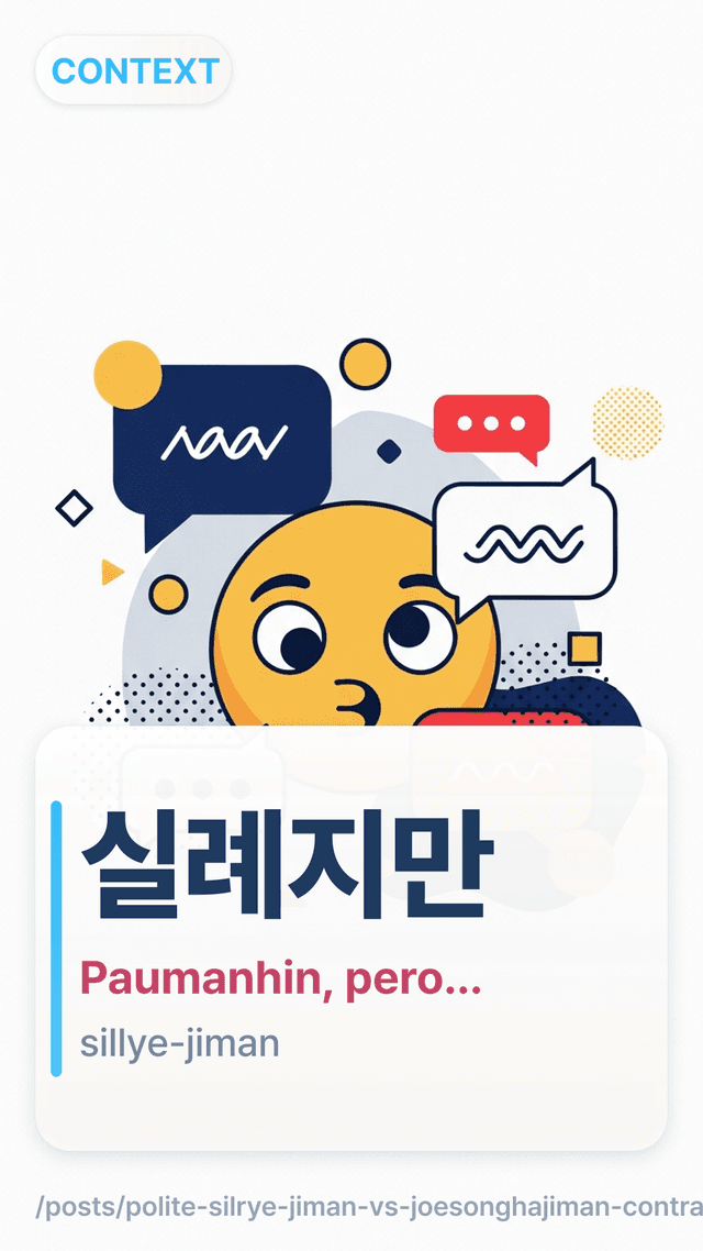 Alamin kung kailan angkop ang 실례지만 vs 죄송하지만—pahintulot vs paghingi ng tawad—may face-threat meter, talahanayan, at mga rewrite para mas magalang ang dating.