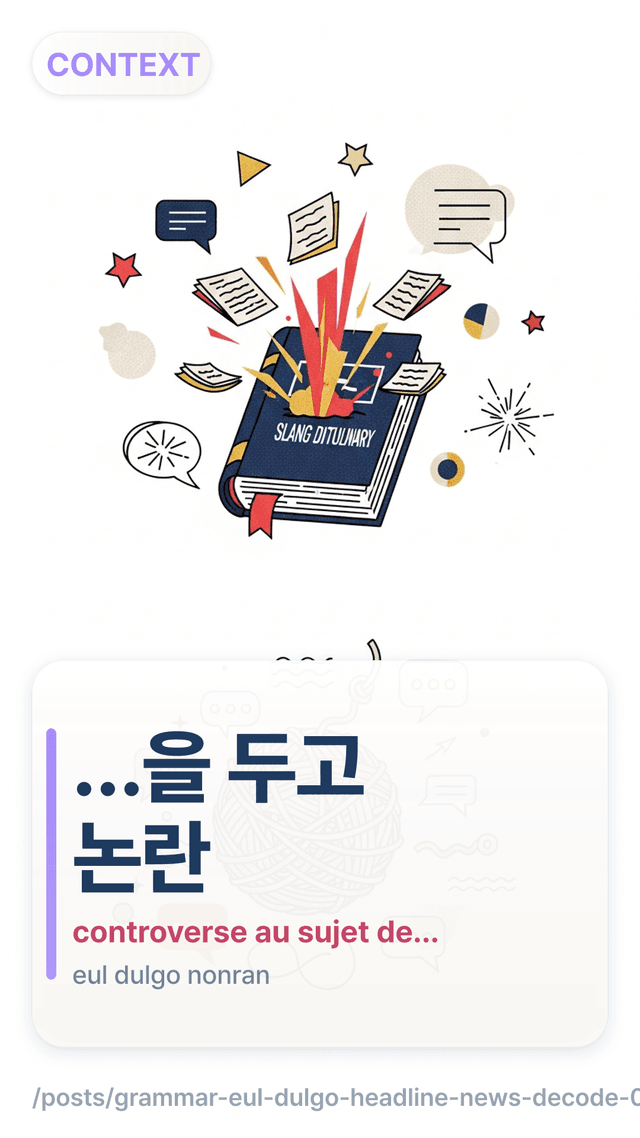 Décodez -(으)ㄹ/을 두고 et 논란 dans les titres coréens grâce à un arbre de décision simple et des reformulations utiles au chat comme au travail.