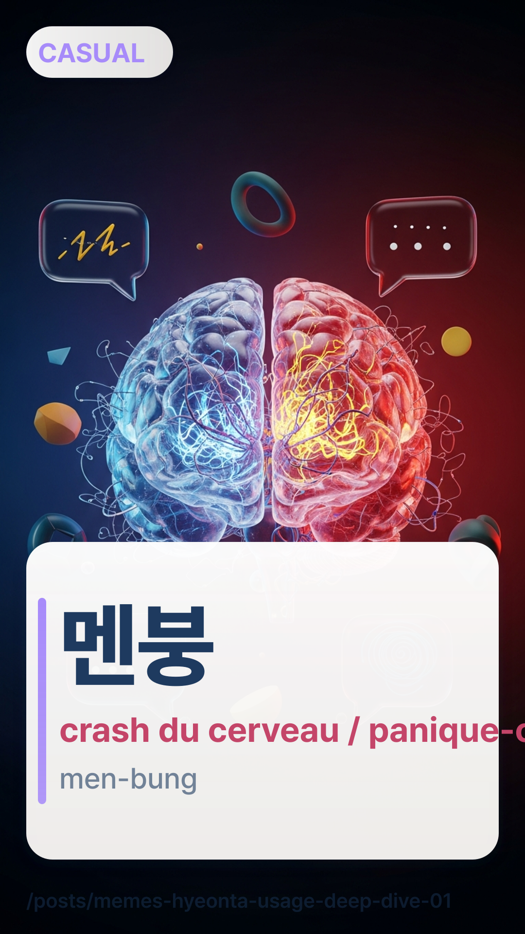 Autre piège : au travail, 멘붕menbung peut sonner trop casual si tu parles à un supérieur.