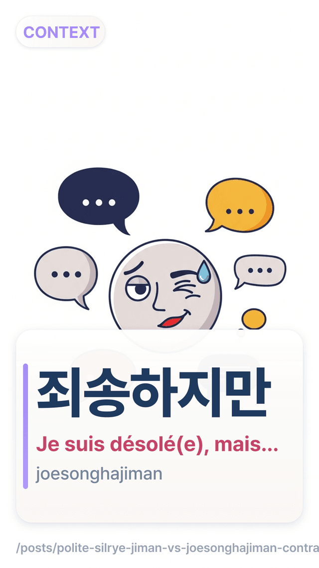 La première semaine où j’ai vécu à Séoul, je commençais souvent par 죄송하지만joesonghajiman juste pour poser une simple question au comptoir. C’était poli, mais ça donnait aussi l’impression que j’avais déjà causé des soucis. Une fois que vous sentez cette différence, ces deux expressions deviennent beaucoup plus faciles.