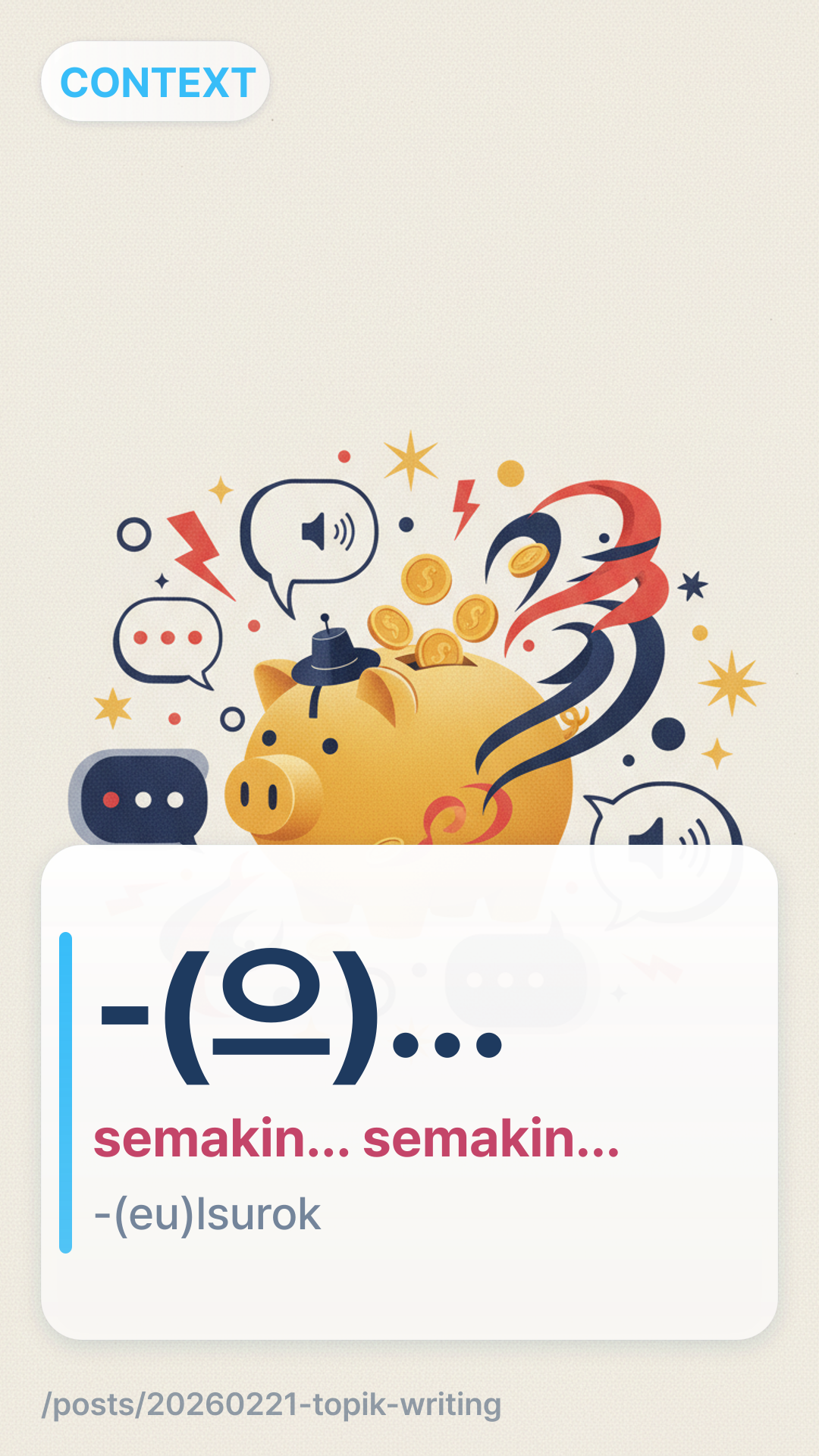 Tingkatkan skor menulis TOPIK II Anda dengan -(으)ㄹ수록 dan -기 마련이다. Kuasai pola tata bahasa penting ini dengan latihan dan kerangka paragraf.