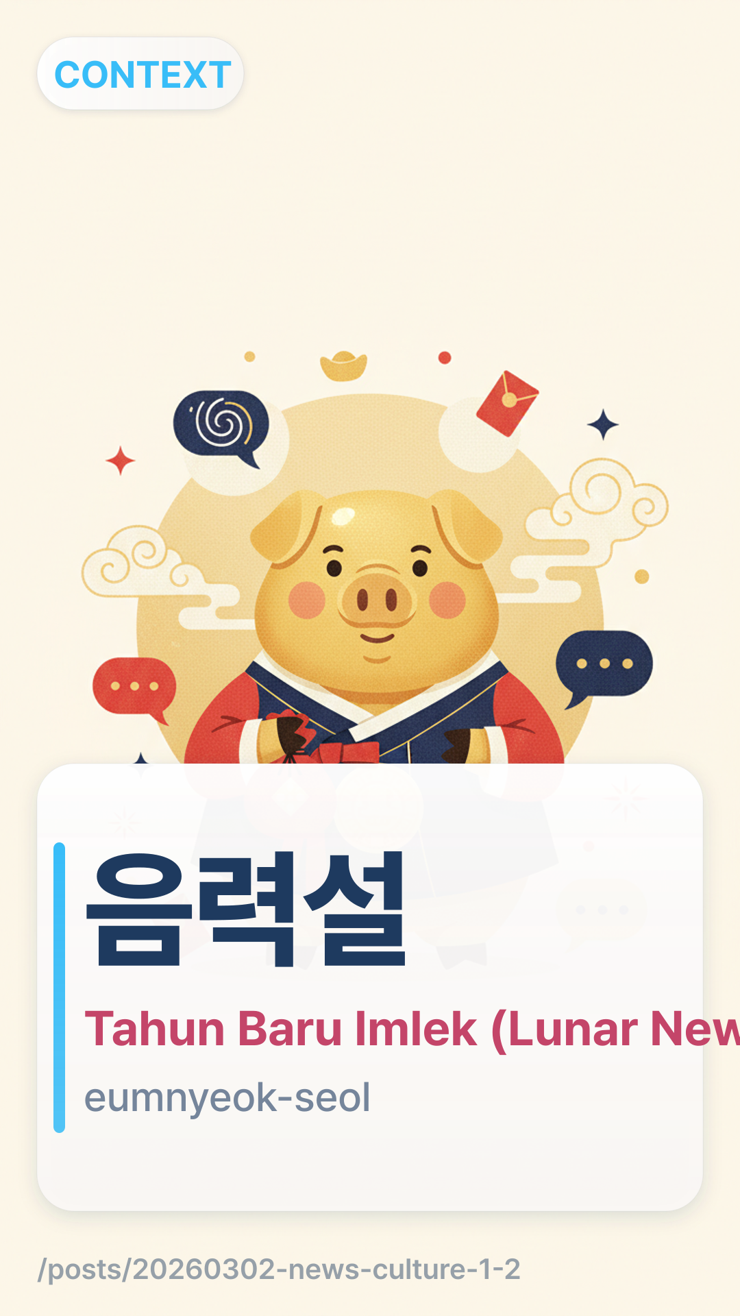 ์๋ ฅ์คeumryeokseol (Eumnyeok-seol) mengacu pada Tahun Baru berdasarkan kalender lunar. Dalam konteks artikel ini, ini adalah istilah yang digunakan untuk menerjemahkan "Lunar New Year" dan mewakili gagasan bahwa hari raya tersebut milik seluruh Asia Timur, bukan hanya satu negara.