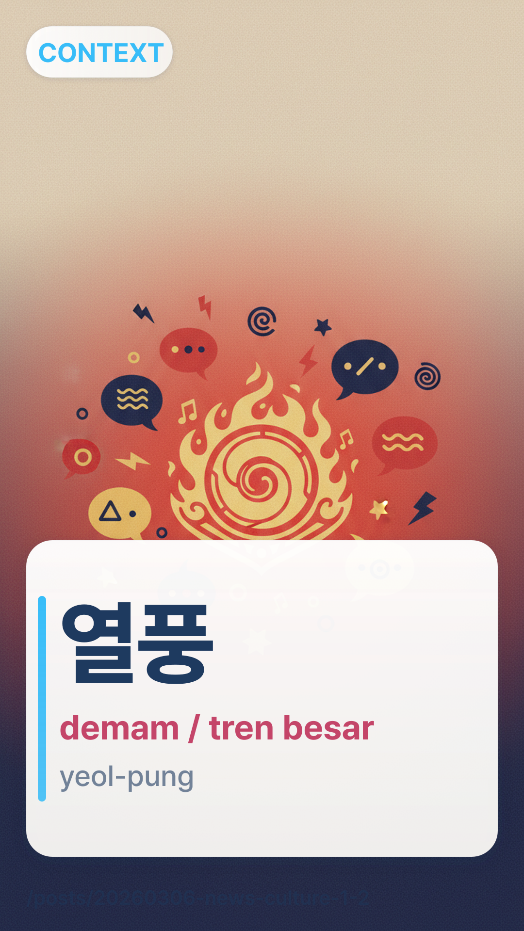 열풍yeolpung (Yeol-pung) secara harfiah diterjemahkan sebagai 'demam' atau 'angin panas'. Dalam konteks budaya, ini mengacu pada kegilaan massal, sindrom, atau tren yang melanda negara tersebut. Ini lebih kuat daripada sekadar 'tren' dan menyiratkan tingkat obsesi sosial.