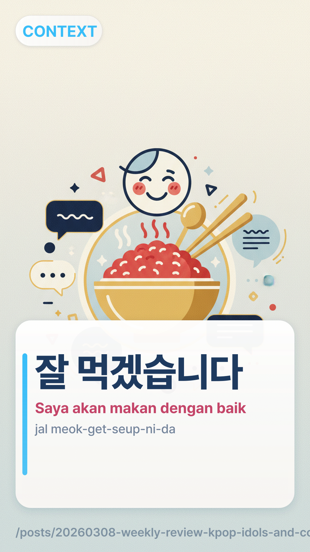 ์ ๋จน๊ฒ ์ต๋๋ค! โ Saya akan makan dengan baik (Selamat makan)!