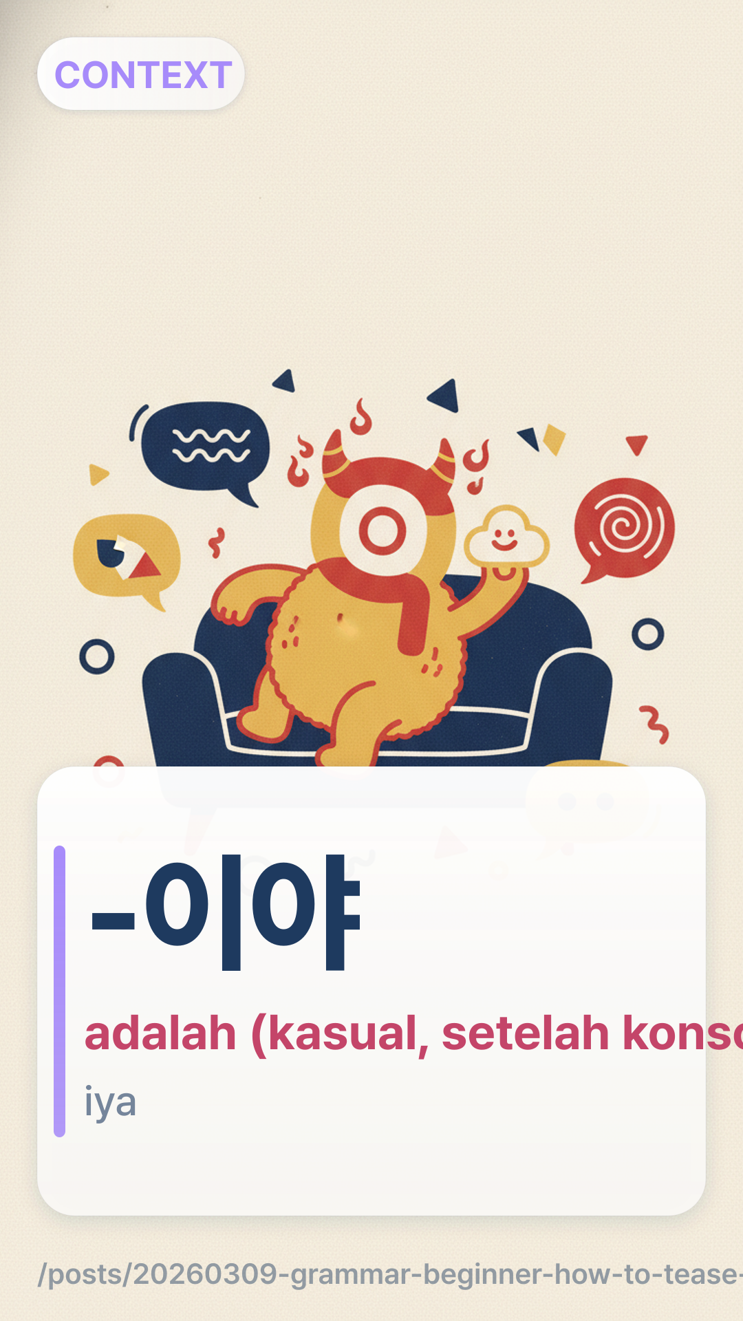 Banyak pemula tetap menggunakan akhiran sopan -예요/이에요-yeyo/ieyo bahkan saat bercanda dengan teman dekat. Meskipun aman, hal ini menciptakan 'dinding kesopanan' yang merusak suasana candaan.