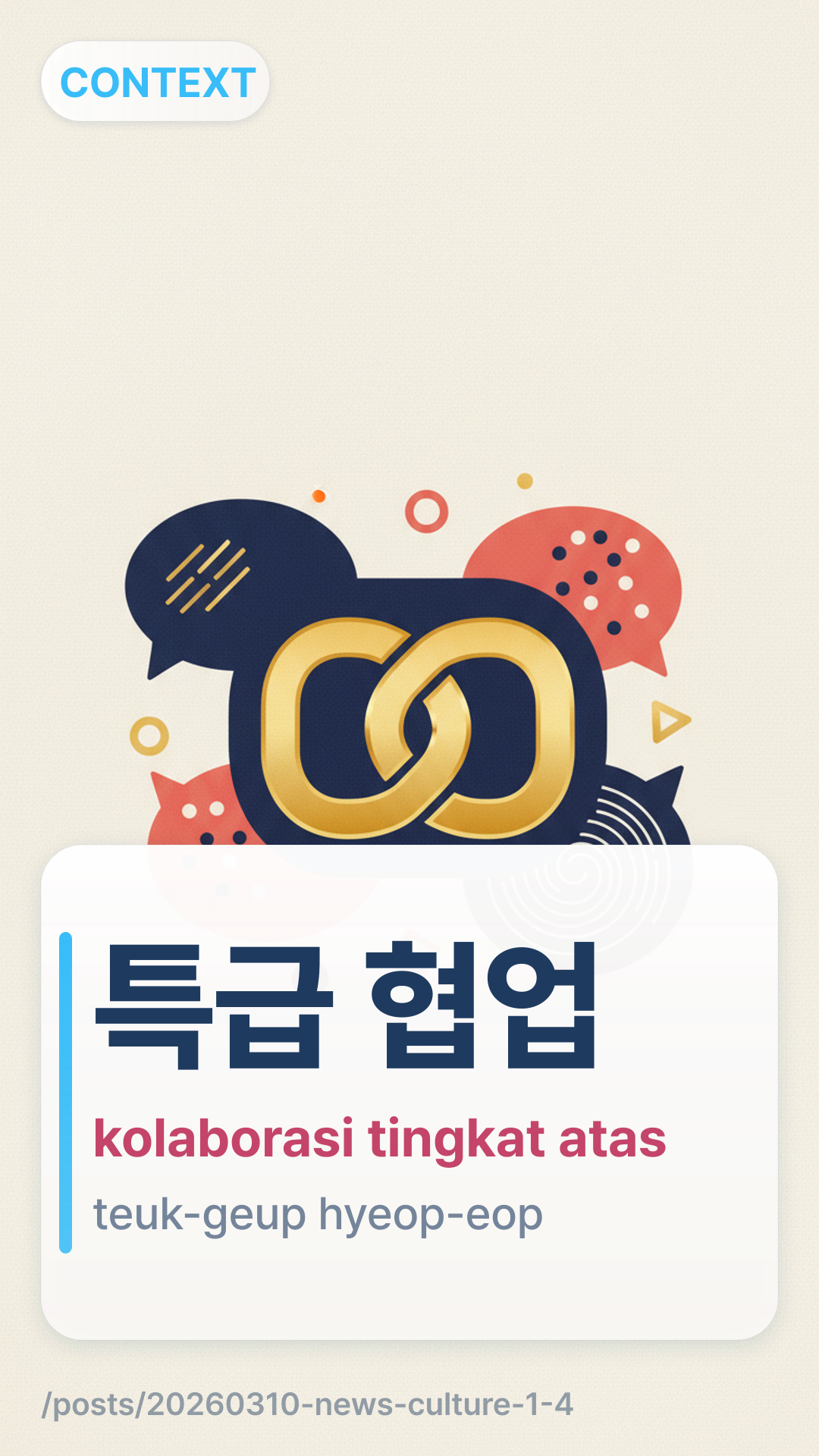 특급 협업teukgeup hyeobeop (teuk-geup hyeop-eop) mengacu pada kolaborasi "tingkat atas" atau "spesial" antara bintang-bintang profil tinggi. Dalam industri hiburan, istilah ini digunakan untuk mempromosikan proyek yang melibatkan dua atau lebih entitas terkenal.