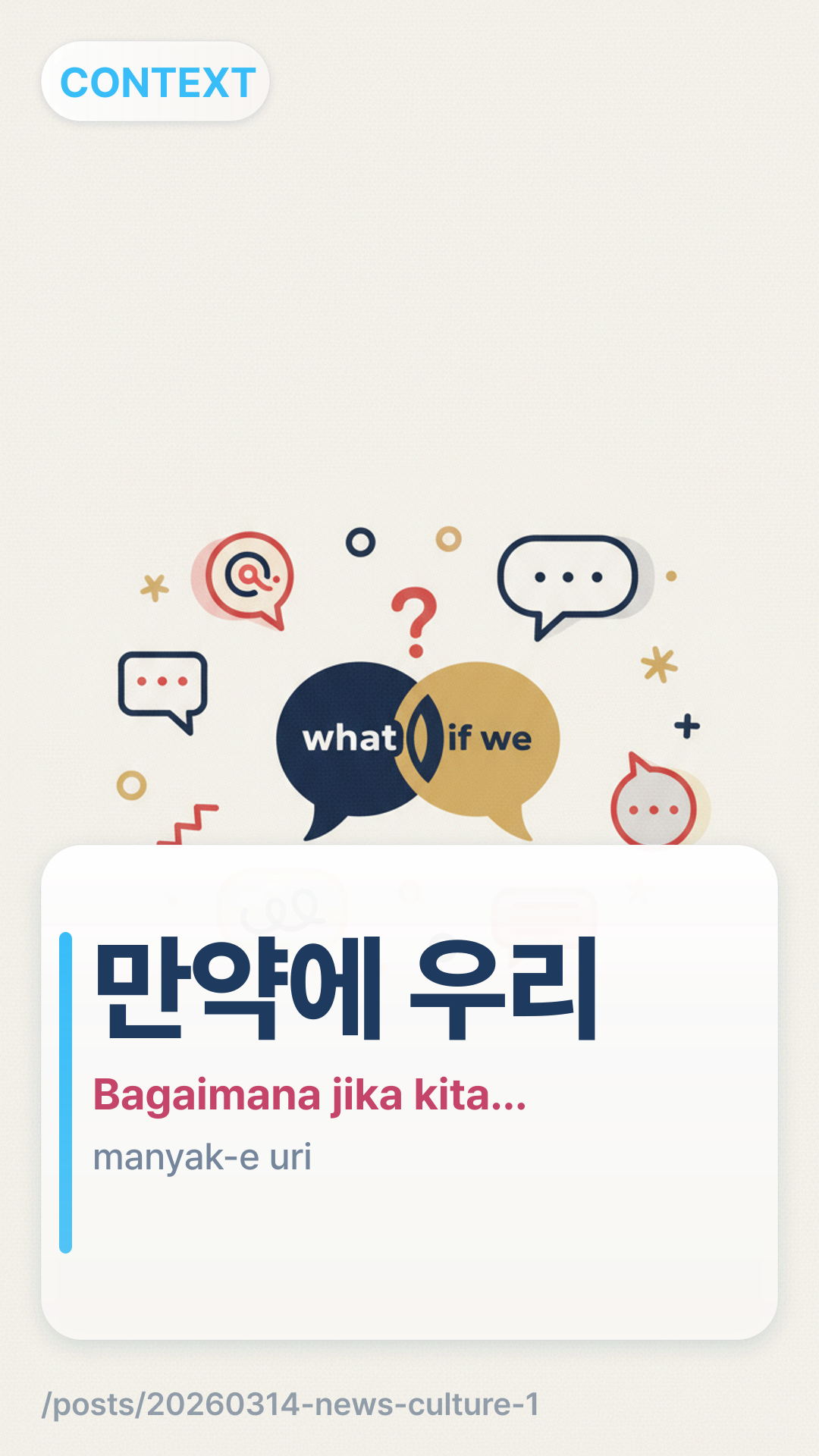 Frasa "๋ง์ฝ์ ์ฐ๋ฆฌ" (Bagaimana jika kita...) berfungsi sebagai titik awal yang pedih untuk merenungkan kondisi manusia, khususnya perasaan penyesalan yang mendalam dan sifat harapan yang gigih. Dalam konteks budaya dan sinema Korea kontemporer, ungkapan ini sering merangkum pengandaian yang menghantui individu setelah perpisahan atau kesempatan yang terlewatkan.