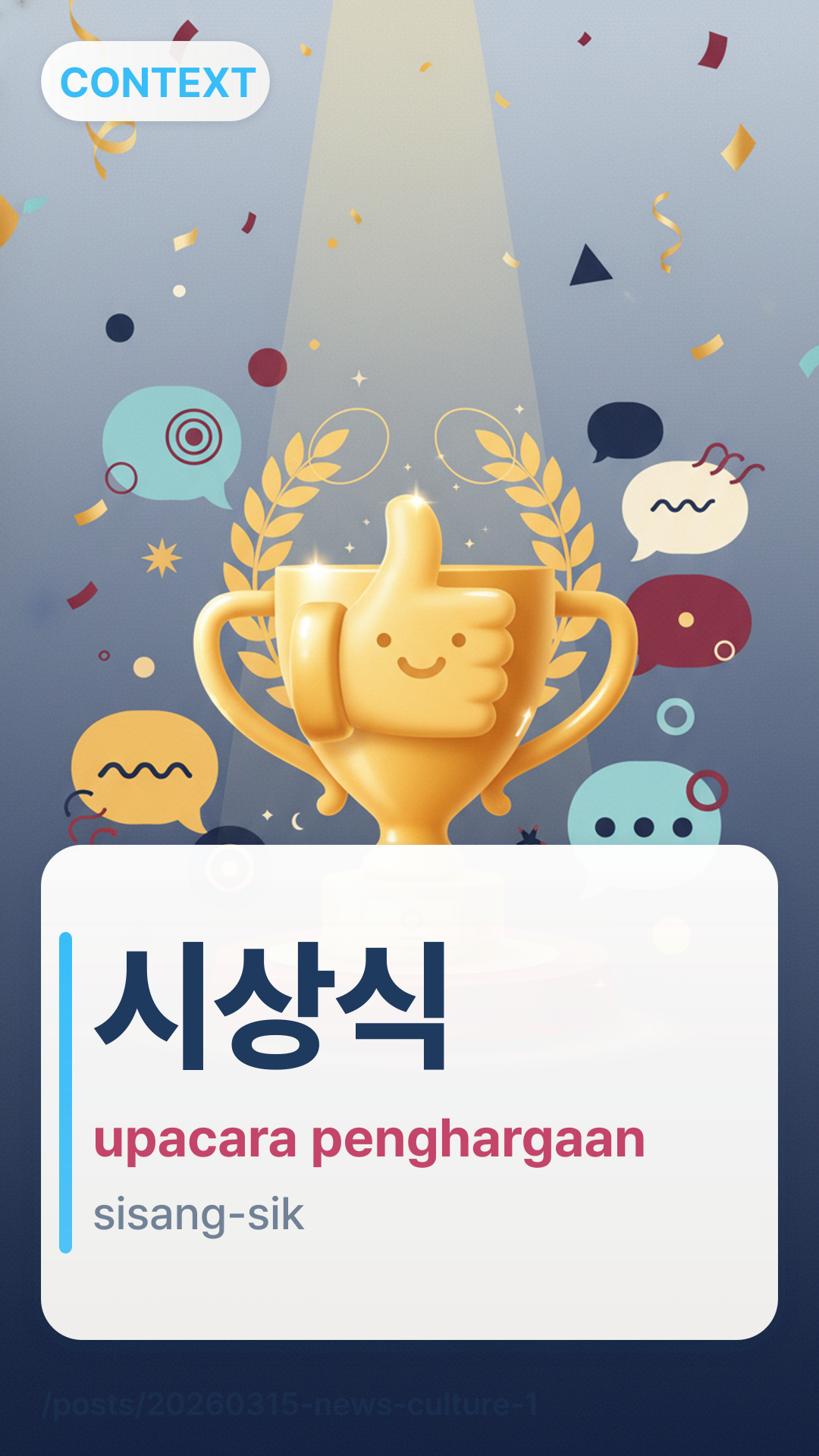 ์์์sisangsik (sisang-sik) merujuk pada upacara penghargaan atau acara pemberian hadiah. Ini adalah kata majemuk di mana '์์' berarti memberikan hadiah dan '์' berarti upacara atau formalitas.