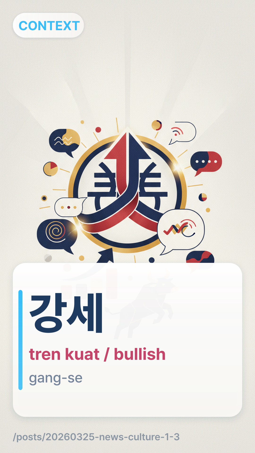 ๊ฐ์ธgangse (Gang-se) merujuk pada "tren kuat" atau "pasar bullish" dalam konteks keuangan. Meskipun dalam bahasa umum ini bisa berarti aksen yang kuat atau kekuatan fisik, dalam berita utama hampir selalu menunjukkan bahwa harga saham atau nilai mata uang sedang naik atau diperkirakan akan naik.