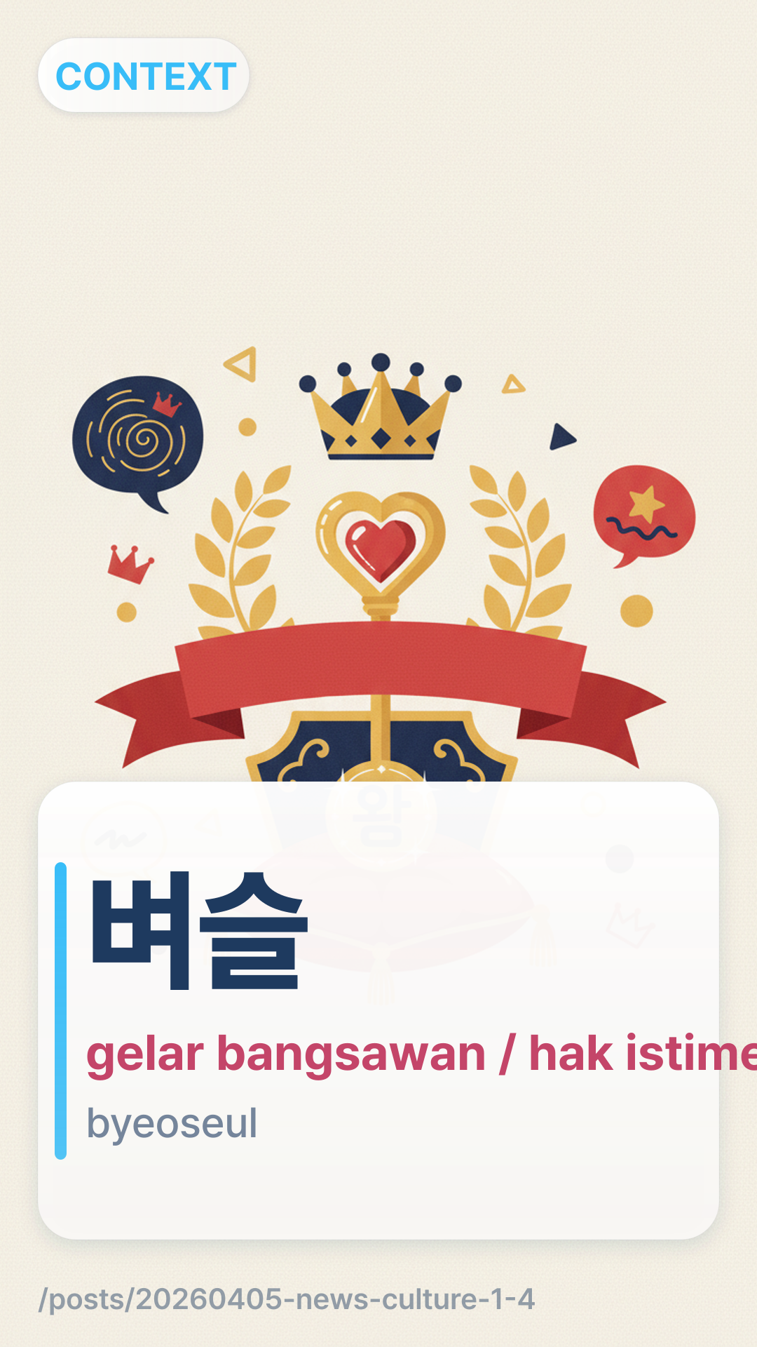 Dalam konteks ini, ๋ฒผ์ฌbyeoseul (byeoseul) merujuk pada jabatan pemerintahan kuno atau gelar bangsawan dari Dinasti Joseon. Dalam bahasa gaul modern, kata ini digunakan secara sarkastik untuk menggambarkan seseorang yang bertindak seolah-olah pekerjaan atau situasi mereka memberi mereka pangkat khusus dan superior yang memungkinkan mereka memerintah orang lain.