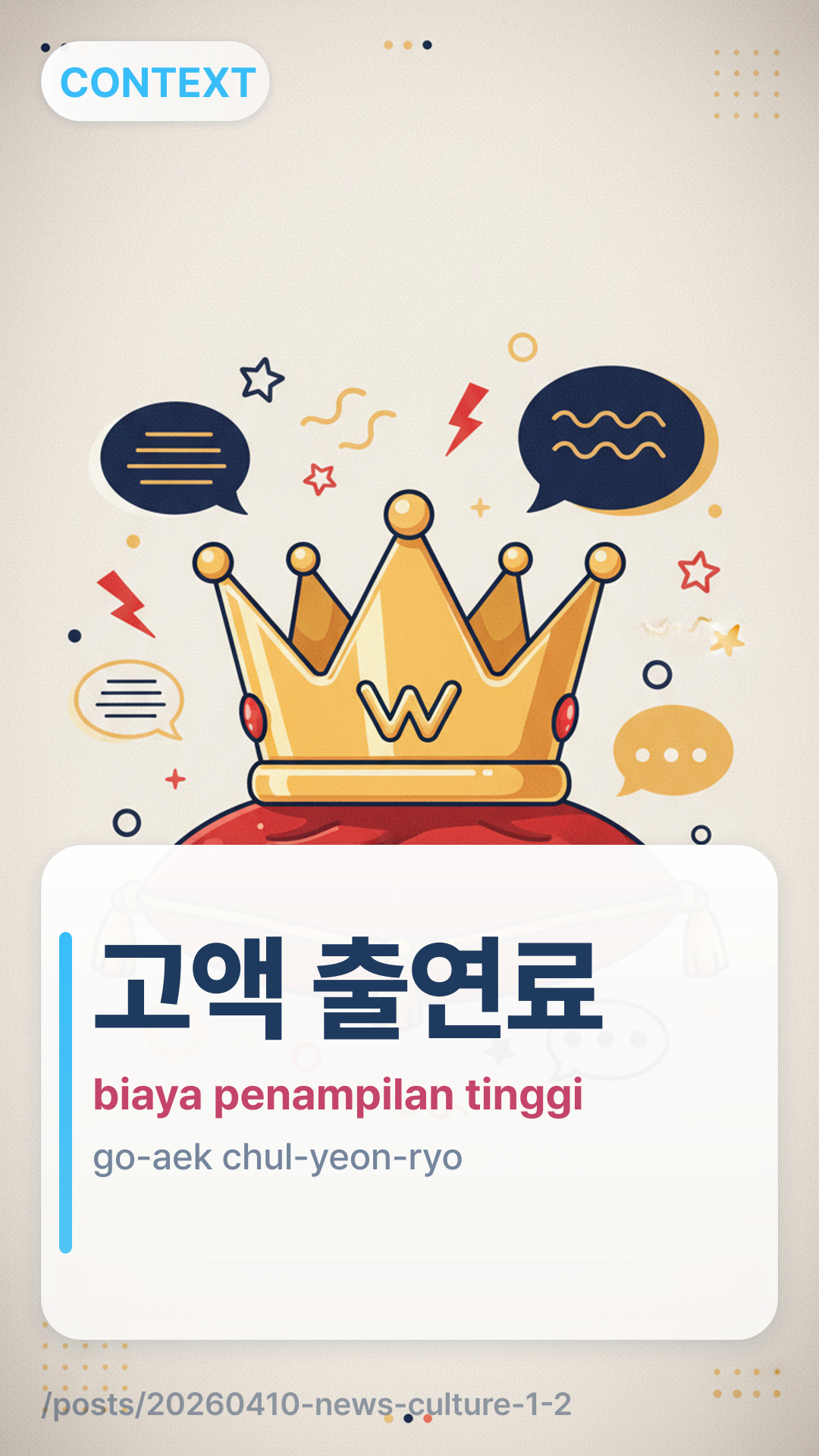 ๊ณ ์ก ์ถ์ฐ๋ฃgoaek churyeonryo (go-aek chul-yeon-ryo) mengacu pada "biaya penampilan jumlah tinggi" atau gaji yang sangat tinggi yang dibayarkan kepada pemain, biasanya aktor utama dalam drama atau film. Dalam konteks media Korea saat ini, ini secara khusus merujuk pada tren inflasi yang disebabkan oleh platform OTT global.