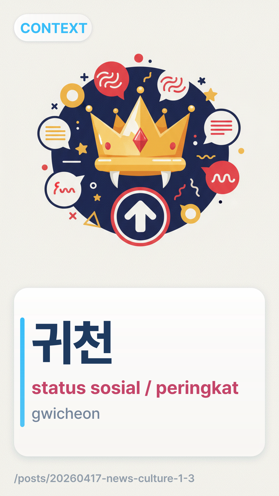 ๊ท์ฒgwicheon (Gwicheon) mengacu pada perbedaan antara status sosial tinggi dan rendah atau 'mulia' dan 'rendah'. Dalam konteks modern, ini sering digunakan untuk membahas apakah pekerjaan atau latar belakang tertentu secara inheren lebih baik daripada yang lain.
