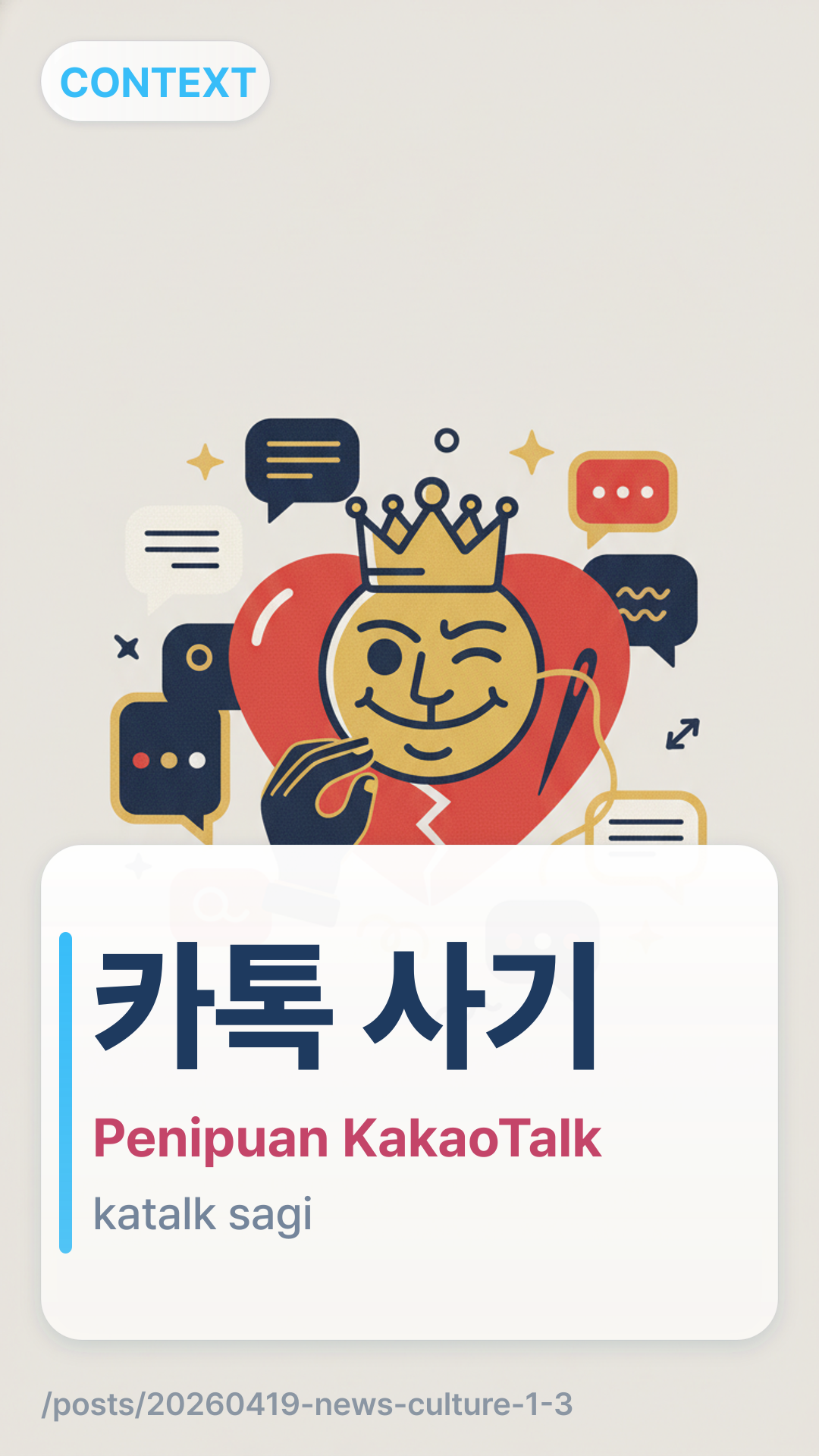 카톡 사기katok sagi (Katalk sagi) merujuk pada aktivitas penipuan yang dilakukan melalui KakaoTalk, aplikasi perpesanan paling populer di Korea Selatan. Ini sering kali melibatkan penyamaran, penjualan palsu, atau tautan phishing yang dikirim langsung ke pengguna.