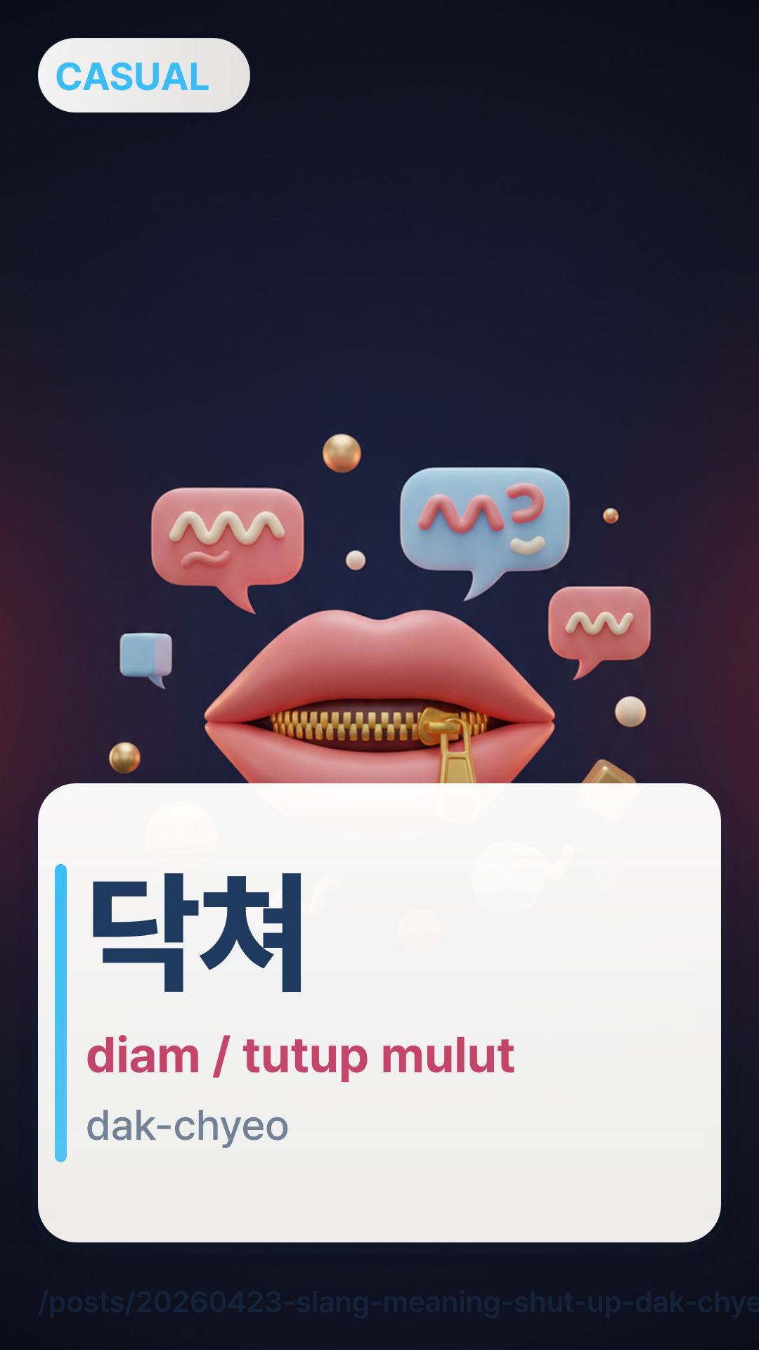 Anda sedang menonton K-drama dengan tensi tinggi seperti The Glory atau Penthouse, dan tiba-tiba seorang karakter membentak, melontarkan kata tajam ๋ฅ์ณ!dakchyeo! (Dak-chyeo). Subtitle mungkin menuliskan "Diam," tetapi reaksi dari karakter lain sering kali berupa keterkejutan atau eskalasi kemarahan. Ini bukan sekadar permintaan untuk tenang; ini adalah tamparan verbal.