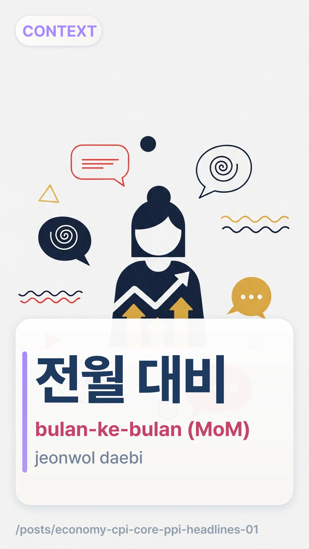 Gunakan bagan alur ‘apa yang diukur?’ untuk membaca headline CPI·근원물가·PPI dan latih frasa MoM/YoY supaya angka tidak tertukar.