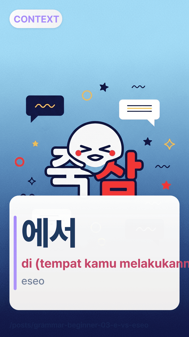 Saya masih ingat minggu pertama saya di Seoul: saya bilang ke teman bahwa saya akan “belajar di kafe” dan memakai 카페에 공부할게요kapee gongbuhalgeyo. Mereka paham, tapi langsung membetulkannya—karena belajar adalah aksi yang terjadi di suatu tempat.