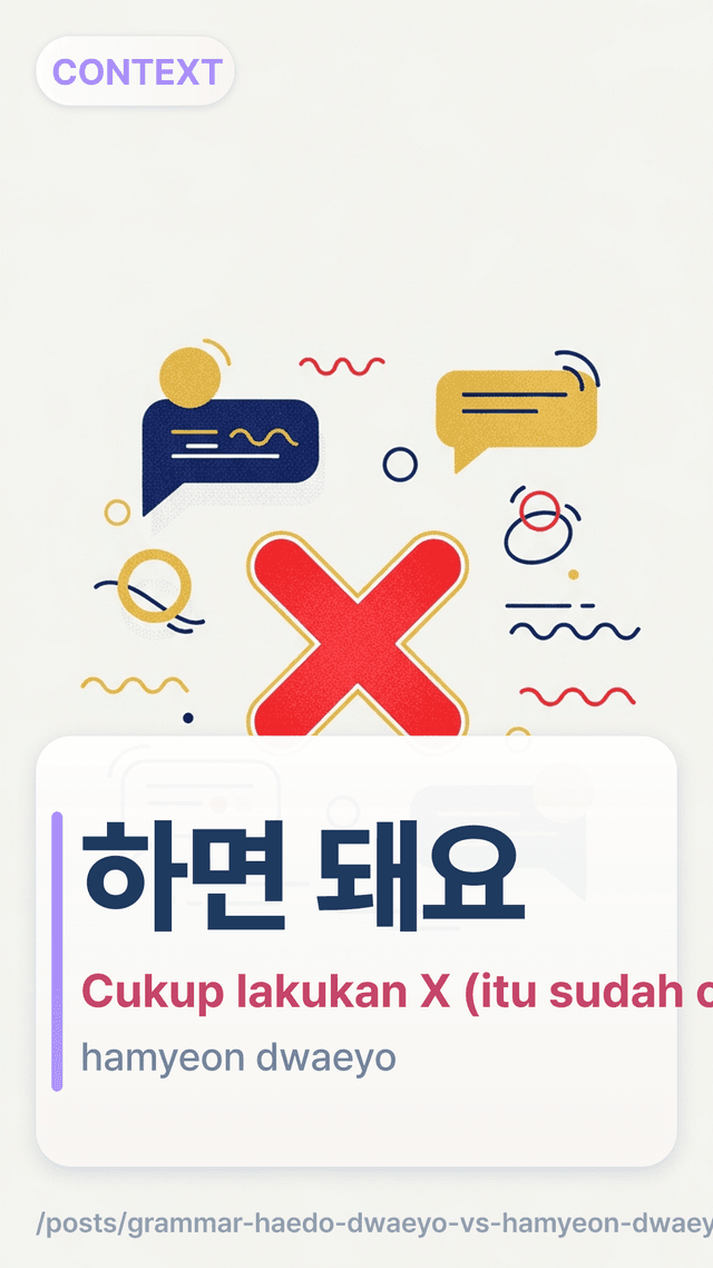 Jebakan umum: pelajar menggantinya dengan 하면 돼요hamyeon dwaeyo karena sama-sama mengandung “melakukan,” padahal maknanya berbalik dari “boleh?” menjadi “ya sudah lakukan saja.” Di tempat kerja, kebalikannya ini bisa membuatmu terdengar seperti memberi instruksi.