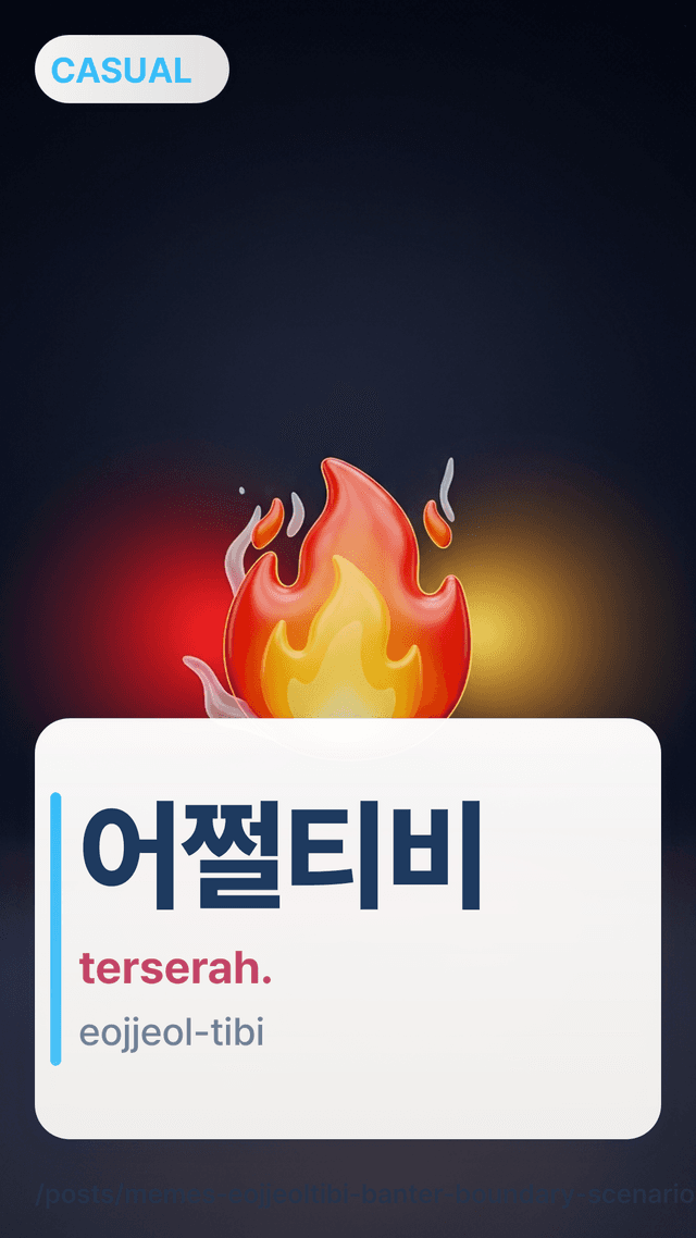 Catatan pribadi: Di grup belajar KakaoTalk kampus, aku pernah lihat 어쩔티비eojjeoltibi dipakai setelah seseorang bilang dia malu. Ruangan langsung hening—orang bacanya sebagai “Aku nggak peduli,” bukan “kita lagi bercanda.”