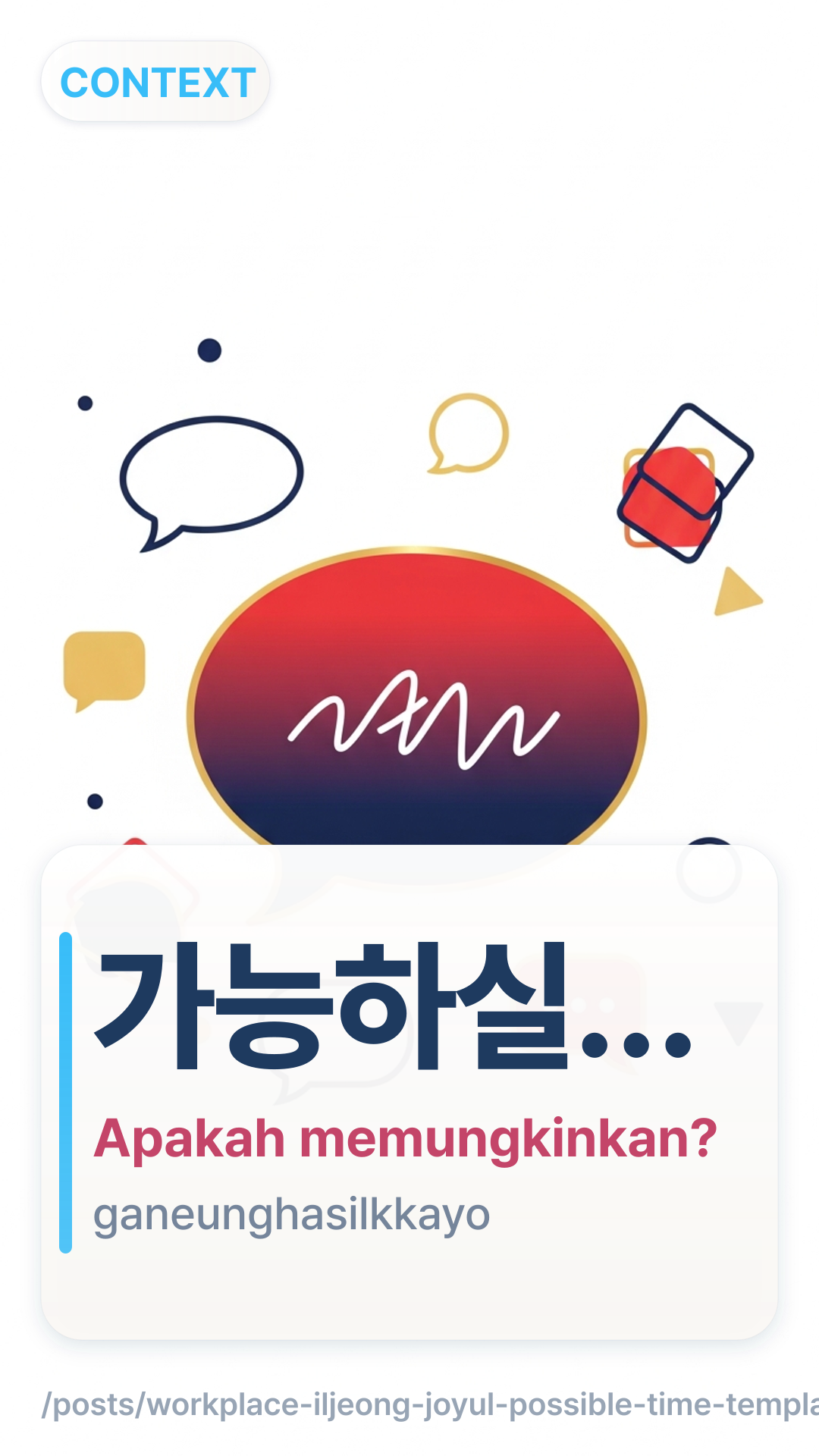 Gunakan 가능하실까요ganeunghasilkkayo saat kamu ingin mengusulkan waktu tanpa terdengar seperti “menetapkan”. Ini terutama aman untuk senior dan kontak eksternal.