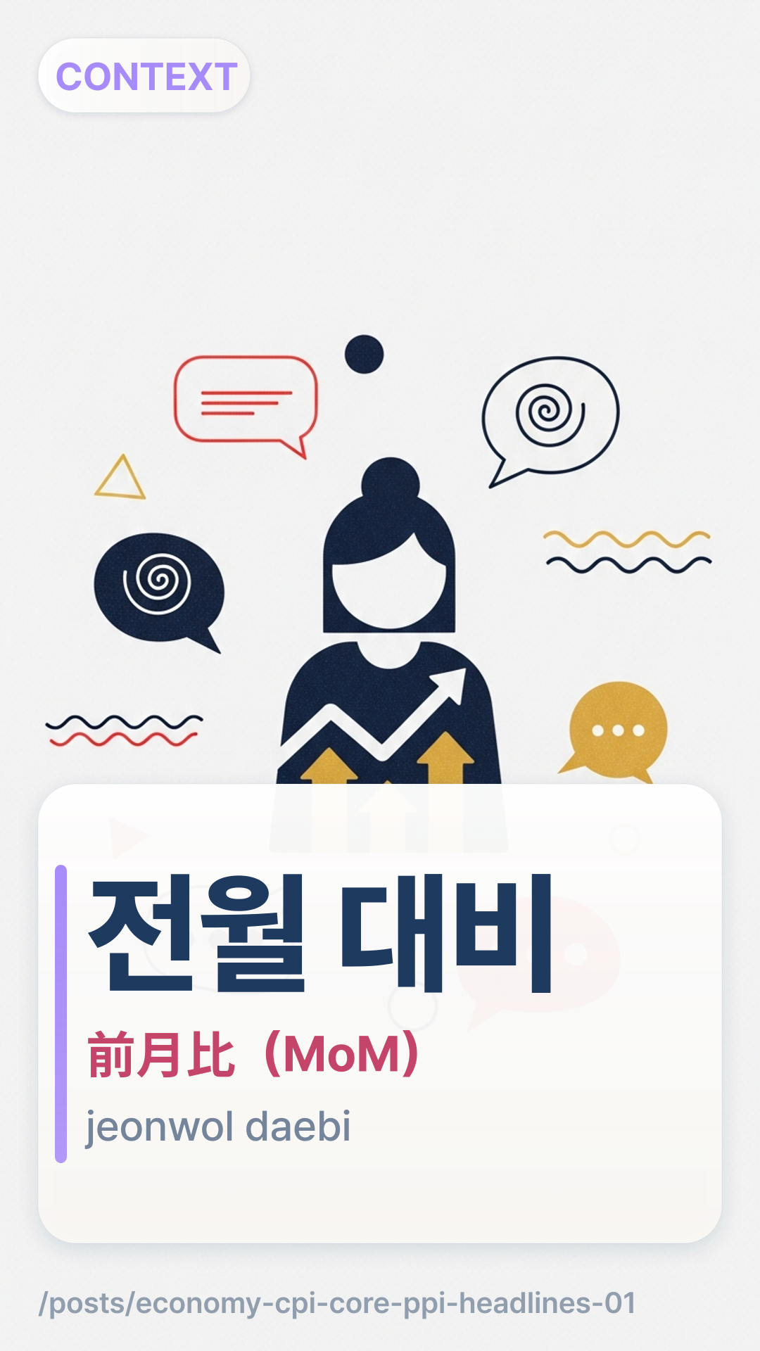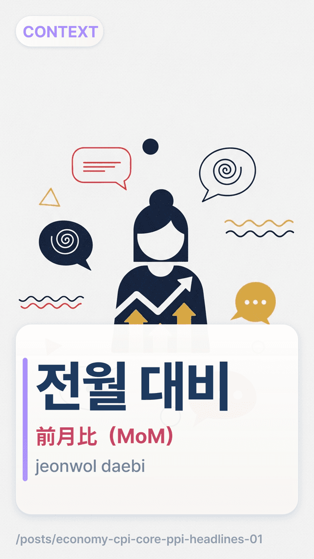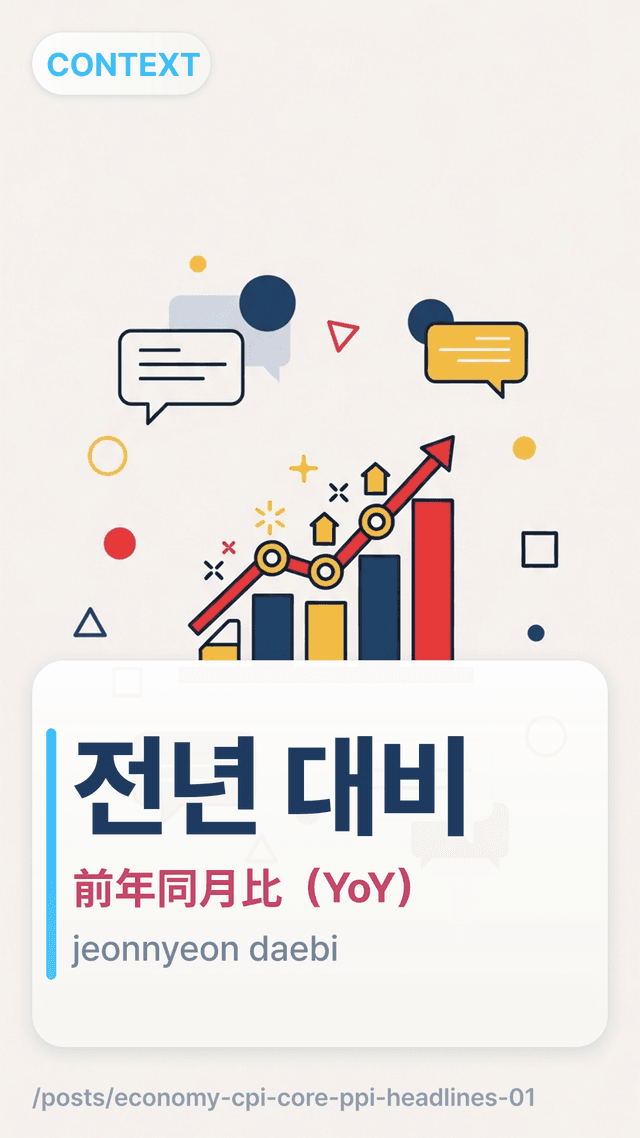 CPI見出しの「전년 대비」「전월 대비」を、簡単なフローチャート・コロケーション・数字ドリルで読み解こう。MoM/YoYの言い回しを固めて、数字の比較軸を取り違えないようにする。