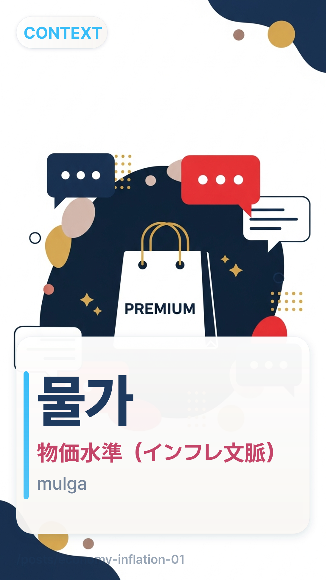 소비자물가(지수) [전년 동월 대비] 2.8% 상승sobijamulga(jisu) [jeonnyeon dowol daebi] 2.8% sangseung물가 상승 압력mulga sangseung apryeok /물가 부담mulga budam생활물가saenghwalmulga(日々の体感に近い) vs소비자물가sobijamulga(公式CPIの枠組み)