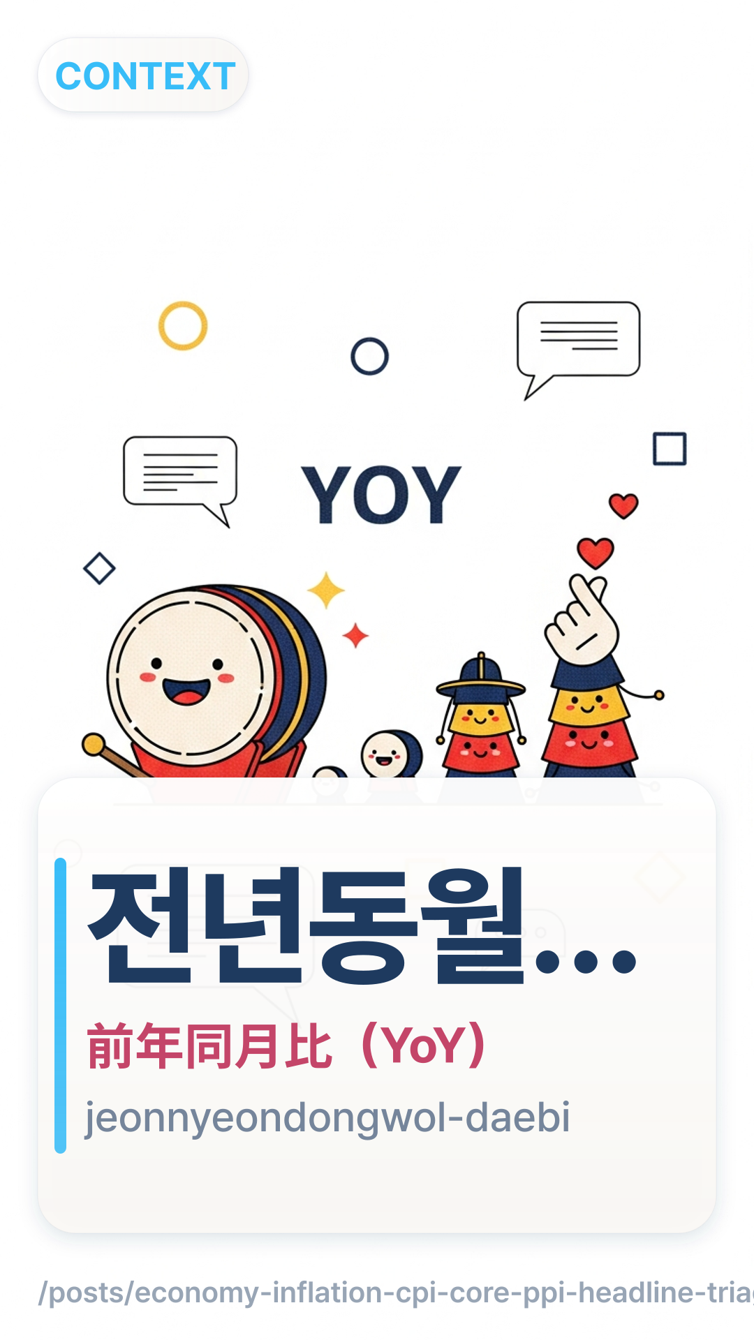 CPI vs コア vs PPIの切り分けツリーに、YoY/MoMと%/%pのドリルを組み合わせて、インフレ見出し10本を言い換える練習をする。これで 상승률・상승폭・전환 を取り違えにくくなる。