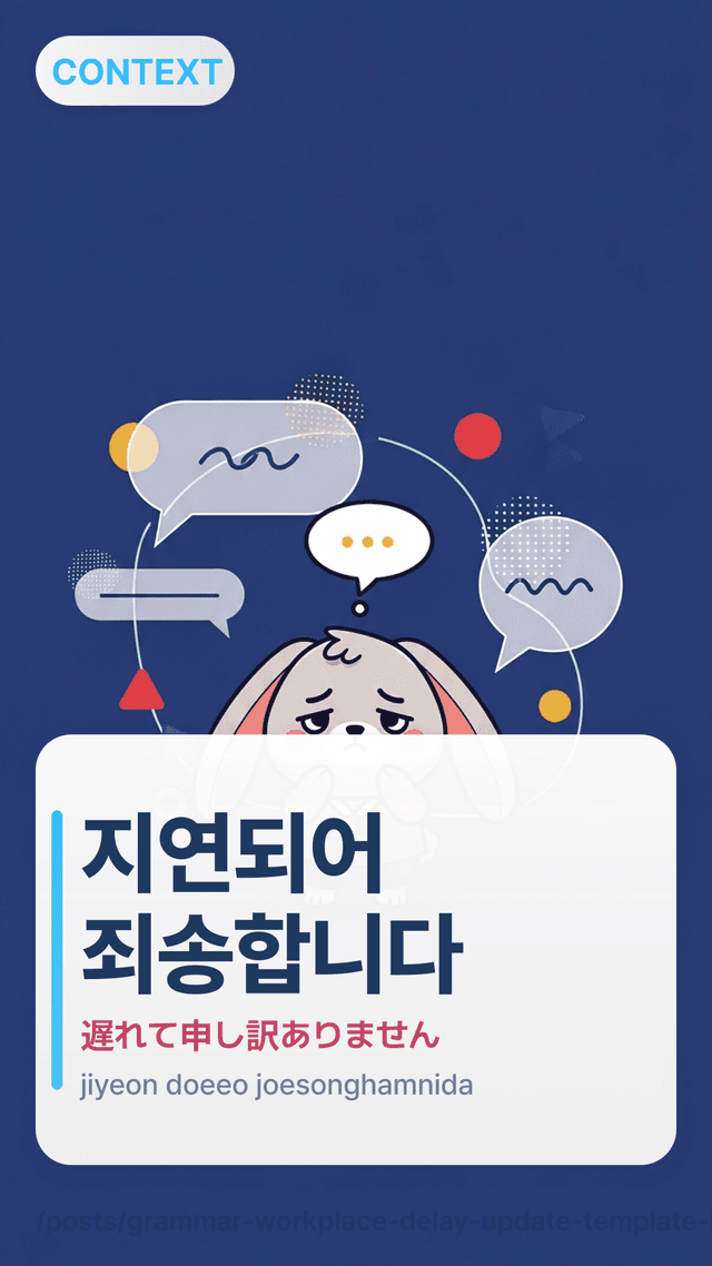 職場での遅延連絡を、지연되어 죄송합니다 と -까지 공유드리겠습니다 で具体的なETA付きにして明確に伝える方法を学ぶ。