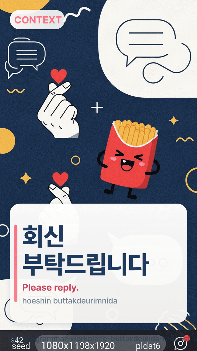 Ajar ‘확인 부탁드립니다’ dengan tangga permintaan 3 tahap, kemudian tulis semula 12 ayat Slack yang kedengaran kasar menjadi Korea yang natural dan tidak berbunyi pasif-agresif.