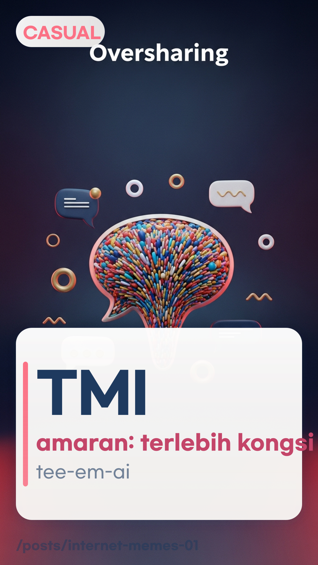 Maksud: TMI (terlalu banyak maklumat), iaitu butiran tambahan.