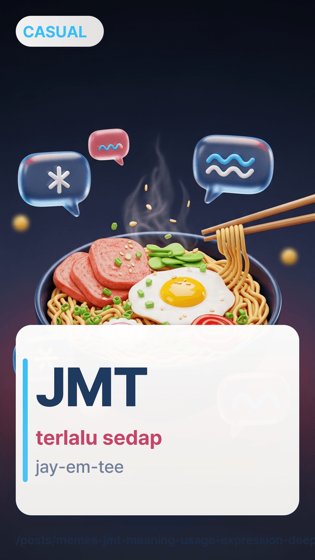 Saya mula-mula perasan di bawah ulasan snek kedai serbaneka lewat malam di Instagram: seseorang muat naik foto kabur makanan hot bar dan komen teratas cuma JMT. Tiada tanda baca, tiada konteks—tapi semua orang faham maksudnya “ini memang sedap gila.”