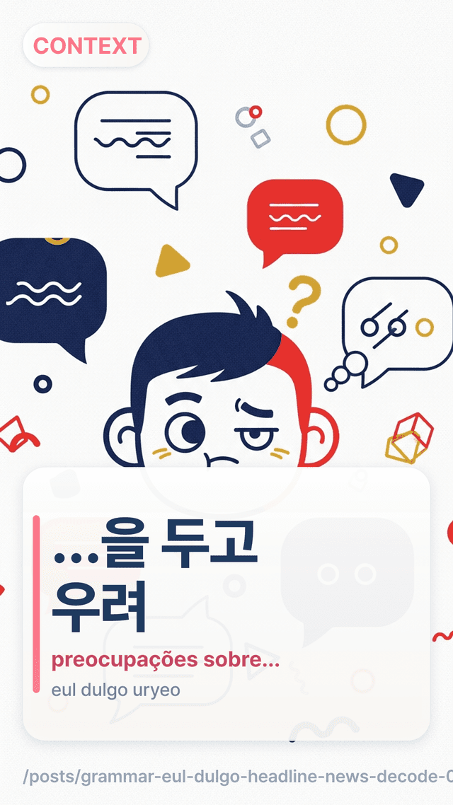 Decodifique -(으)ㄹ/을 두고 e 논란 em manchetes coreanas com uma árvore de decisão simples e reescritas que você pode usar no chat ou no trabalho. Domine