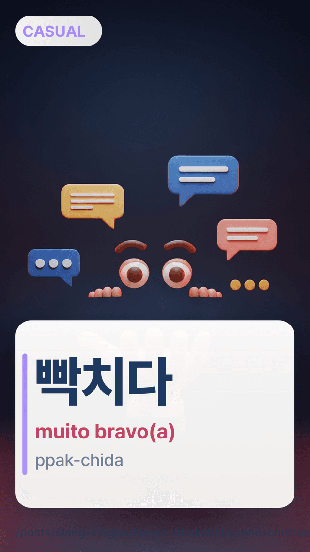 Use 킹받네kingbatne para uma irritação leve, com vibe de meme; use 빡치다ppakchida para raiva de verdade (só com amigos próximos). Se estiver em dúvida — especialmente com um 선배seonbae, clientes ou colegas — evite os dois e vá no neutro.