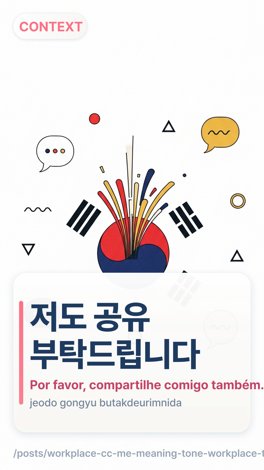 저도 공유 부탁드립니다.jeodo goyu butakdeuripnida. — Por favor, compartilhe comigo também. - Polite: