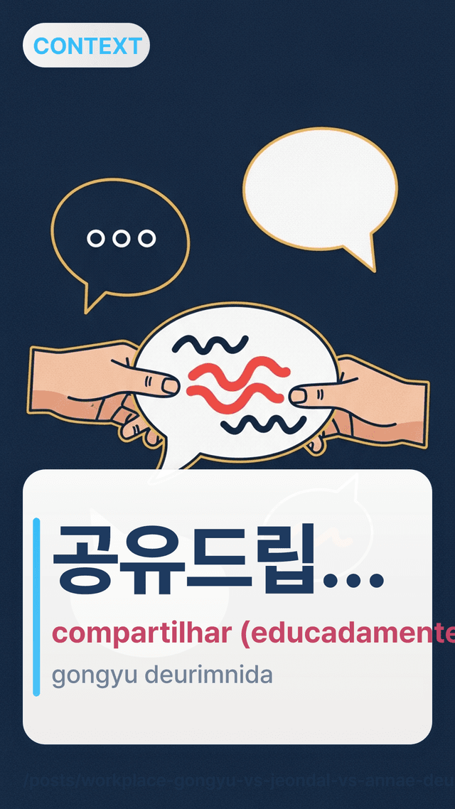 Um detalhe pequeno, mas real: na minha primeira semana trabalhando com uma equipe coreana, eu escrevi 보냅니다bonaepnida como primeira linha. Um colega sugeriu gentilmente trocar por 공유드립니다goyudeuripnida para arquivos e 안내드립니다annaedeuripnida para avisos. A ideia de “enviar” é a mesma, mas o tom soou mais natural no escritório e menos direto.