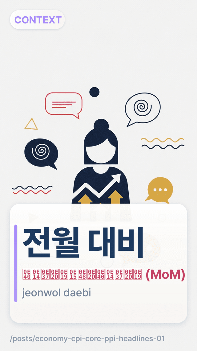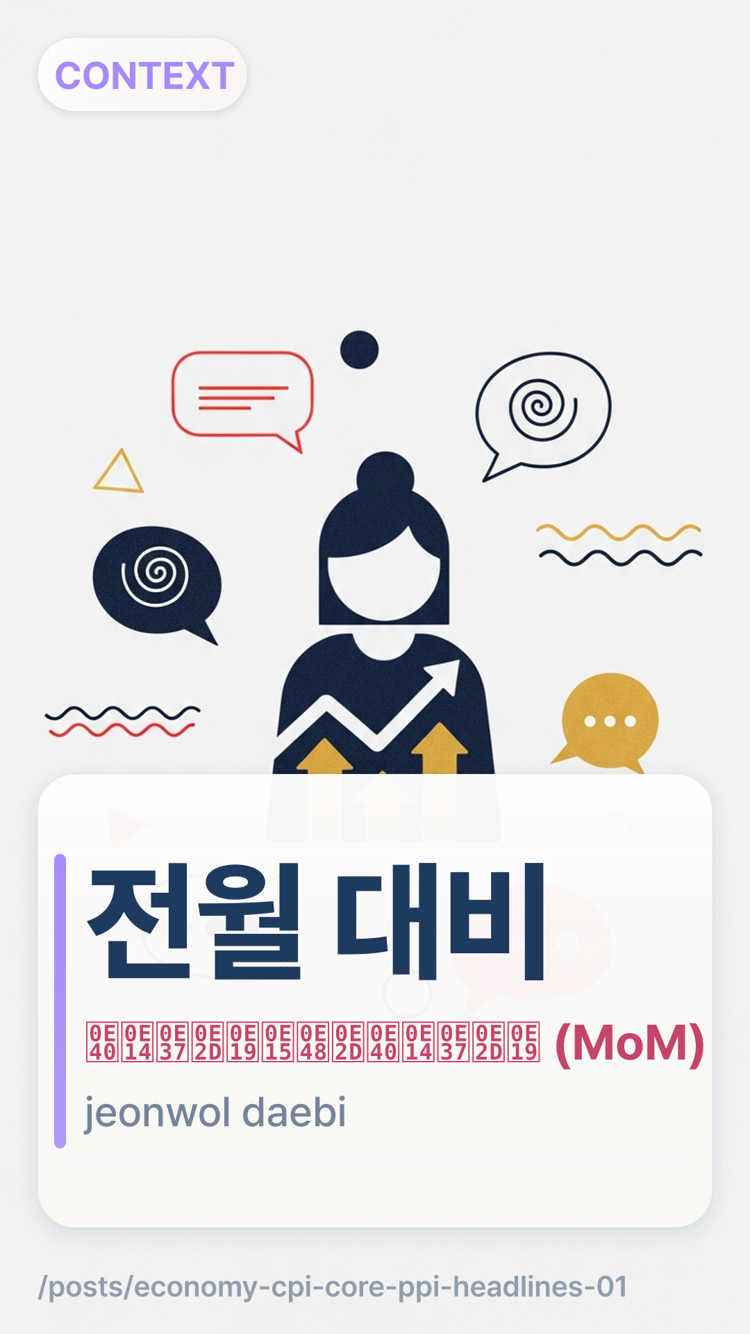 ใช้ผังงาน ‘กำลังวัดอะไรอยู่?’ เพื่อถอดรหัสพาดหัว CPI·근원물가·PPI และฝึกวลี MoM/YoY ให้คล่อง เพื่อไม่สลับตัวเลข