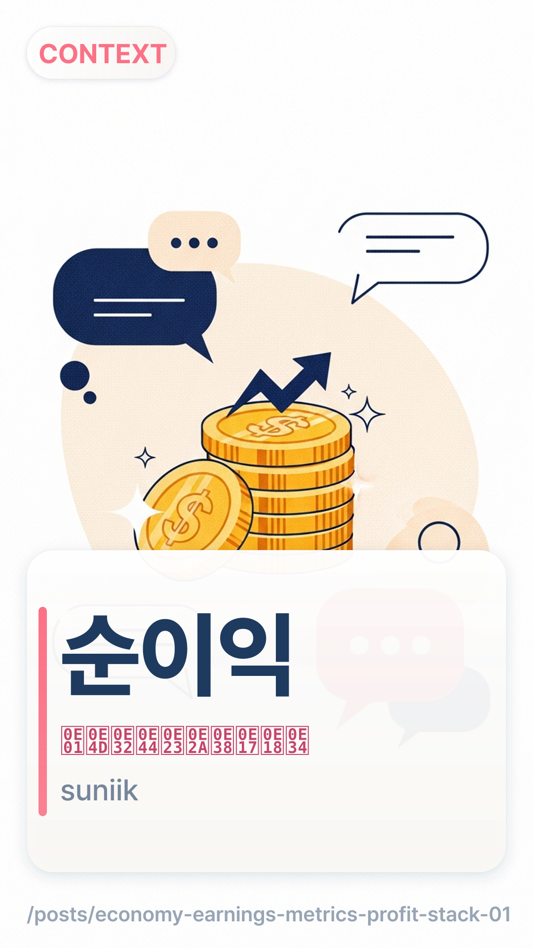 일회성 요인으로 순이익이 크게 늘었습니다.ilhoeseong yoineuro suniigi keuge neureotseupnida. — กำไรสุทธิเพิ่มขึ้นมากเพราะปัจจัยครั้งเดียว.순이익 적자 전환suniik jeokja jeonhwan — การพลิกเป็นขาดทุนสุทธิ.영업이익이 좋아도 순이익은 다르게 나올 수 있습니다.yeoeobiigi johado suniigeun dareuge naol su itseupnida. — แม้กำไรจากการดำเนินงานดี กำไรสุทธิอาจออกมาต่างกันได้.
