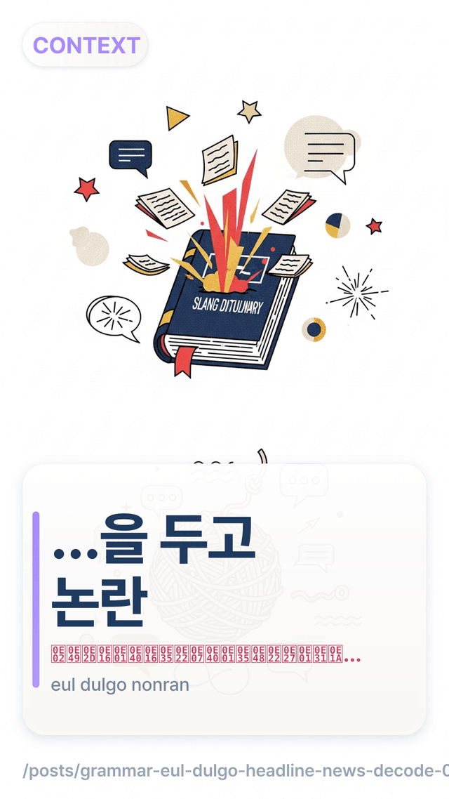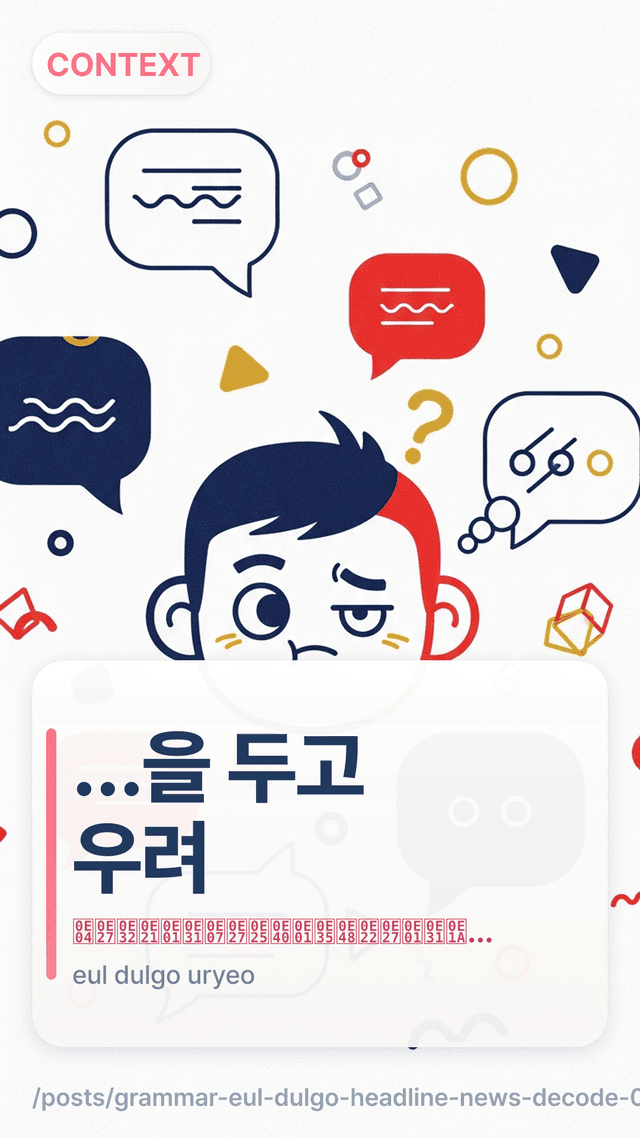ถอดรหัส -(으)ㄹ/을 두고 และ 논란 ในพาดหัวข่าวเกาหลีด้วยแผนผังตัดสินใจแบบง่าย ๆ และประโยคเขียนใหม่ที่ใช้ได้ทั้งแชตและที่ทำงาน เพื่อเข้าใจได้โดยไม่ต้องแปลตรงตัวว่า “วาง/ใส่”