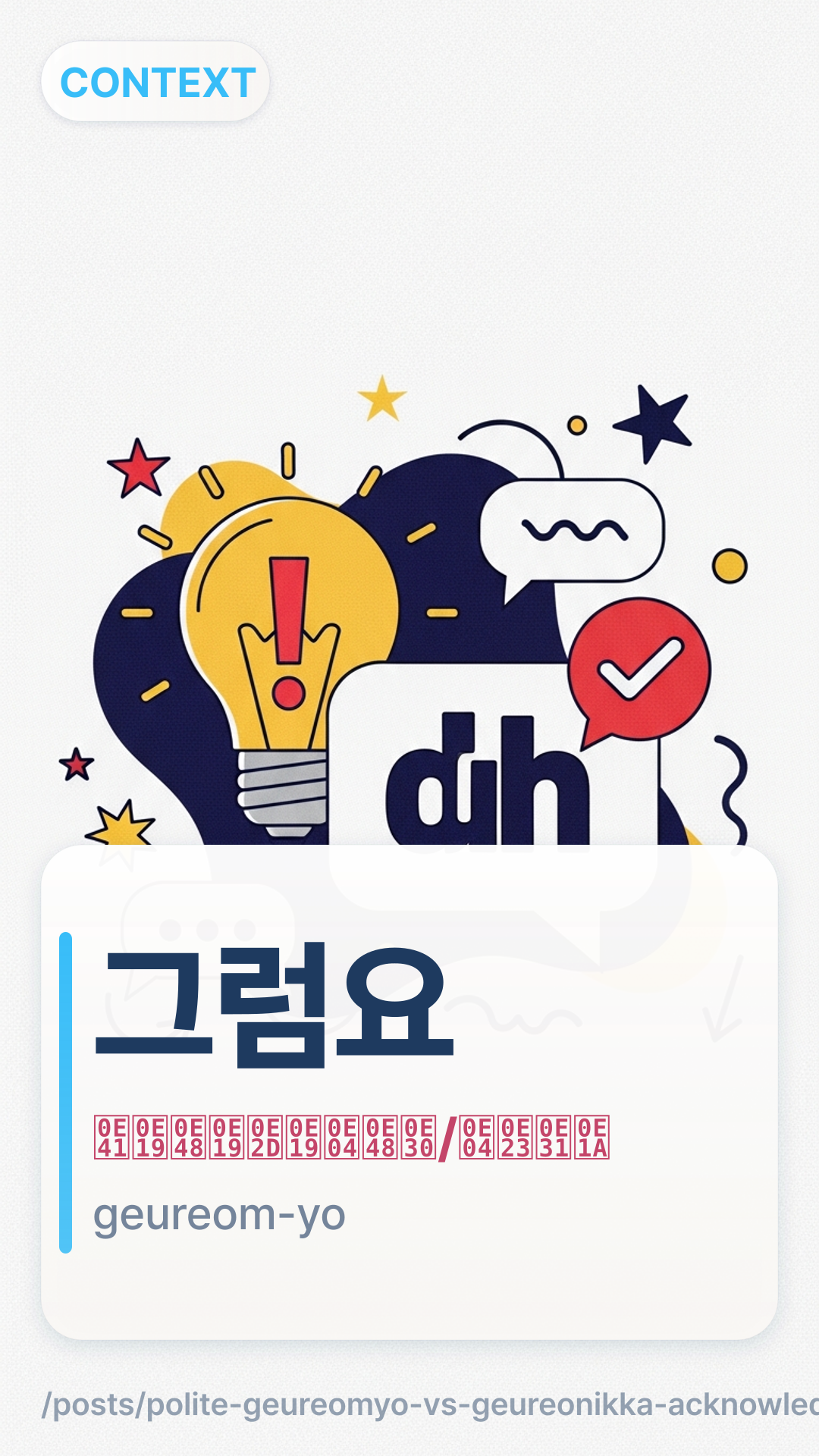 그럼요?geureomyo? — ฟังเหมือน “จริงเหรอ?” (มักไม่ใช่ความหมายที่ต้องการ)