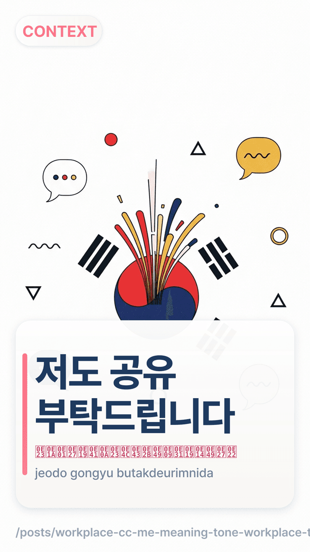 นี่คือจุดอ้างอิงส่วนตัวของฉัน: สัปดาห์แรกที่ออฟฟิศเกาหลี ฉันเอานิสัยภาษาอังกฤษที่พูดแบบตรงๆ (“Please CC me”) มาแปลเป็นเกาหลีแบบตรงตัว ผลออกมาแข็งมาก เพื่อนร่วมทีมเลยสอนดีฟอลต์ที่นุ่มกว่า: ขอให้ใส่ “เพื่อเป็นข้อมูลอ้างอิง (참조)” แล้วปิดด้วยคำขอบคุณ