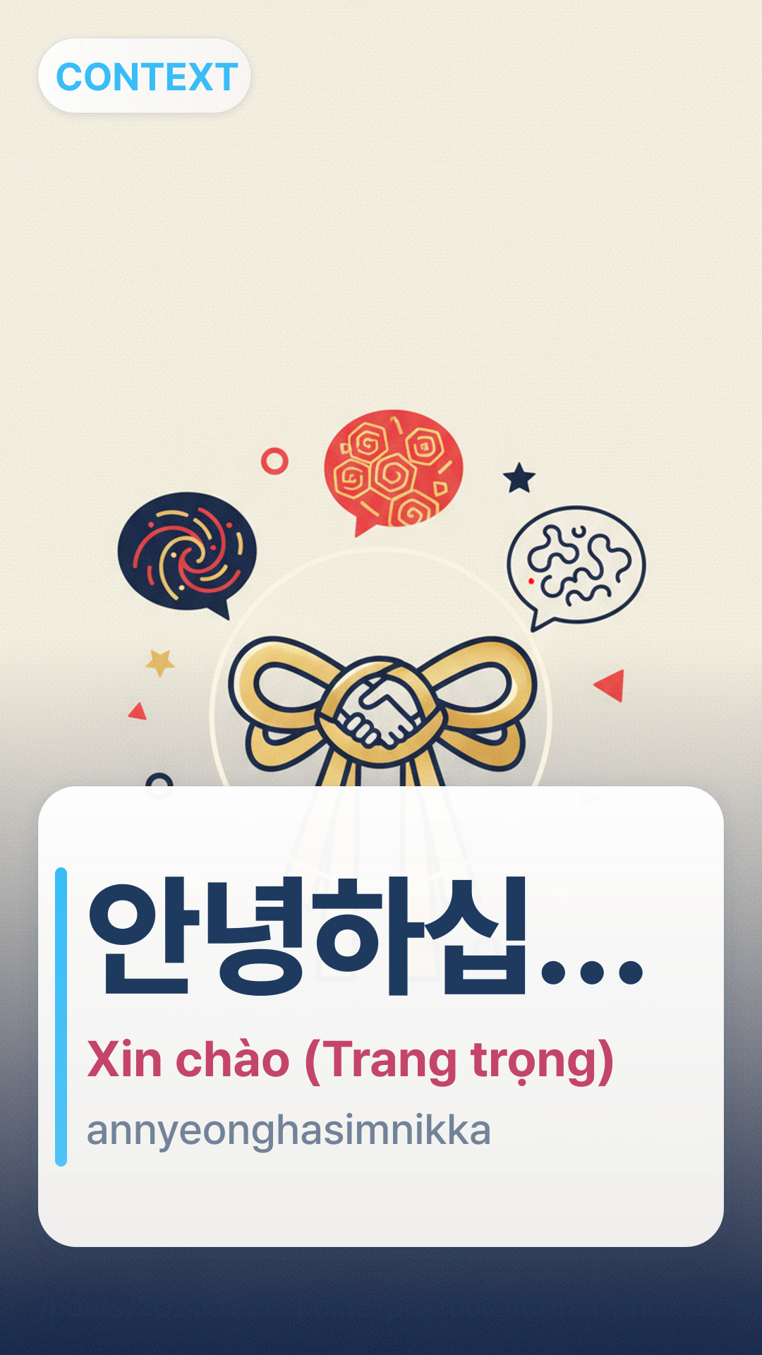 Bạn vừa bước vào một buổi phỏng vấn xin việc hoặc một nhà hàng cao cấp ở Seoul. Bạn nên dùng một lời chào 'Xin chào' đơn giản hay cần thứ gì đó trang trọng hơn? Biết khi nào nên chuyển từ lịch sự tiêu chuẩn sang trang trọng cao cấp có thể là điểm khác biệt giữa một khách du lịch và một người bản xứ chuyên nghiệp.