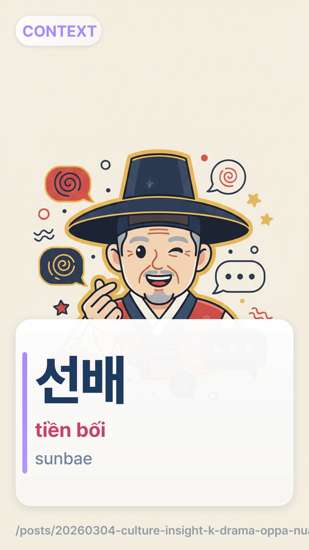 Làm chủ cách dùng 오빠 (Oppa) và 선배 (Sunbae). Tìm hiểu khi nào nên dùng các thuật ngữ này trong hẹn hò và công sở với hướng dẫn và bài kiểm tra của chúng tôi.