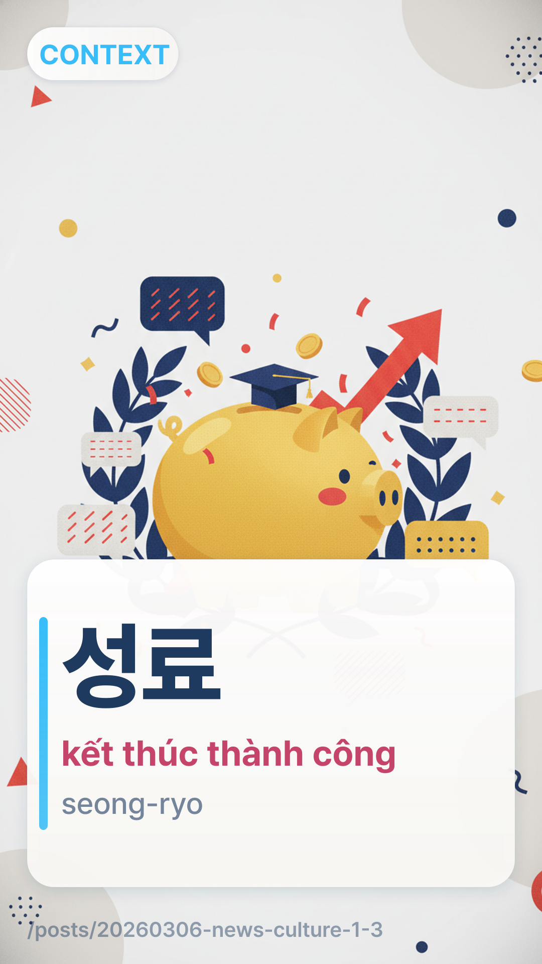 성료seongryo (Seong-ryo) là một thuật ngữ Hán-Hàn trang trọng thường thấy trong các tiêu đề tin tức. Nó kết hợp từ '성' (thành - thành công/thành tựu) và '료' (liễu - kết thúc/hoàn thành) để chỉ một sự kiện đã được kết thúc thành công.
