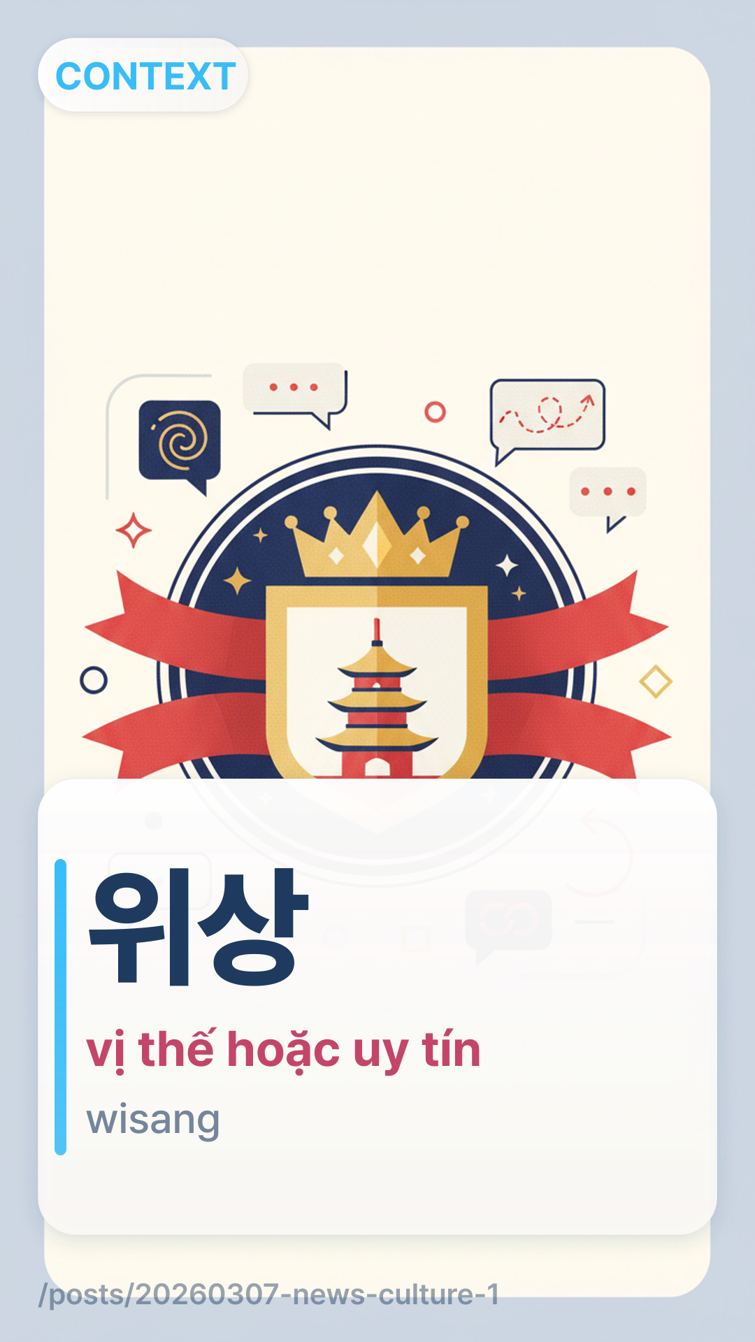 Trong bối cảnh tin tức, 위상wisang (wisang) đề cập đến địa vị, vị thế hoặc uy tín của một thực thể—trong trường hợp này là danh tiếng cao mà CJ ENM từng nắm giữ trong thế giới điện ảnh.